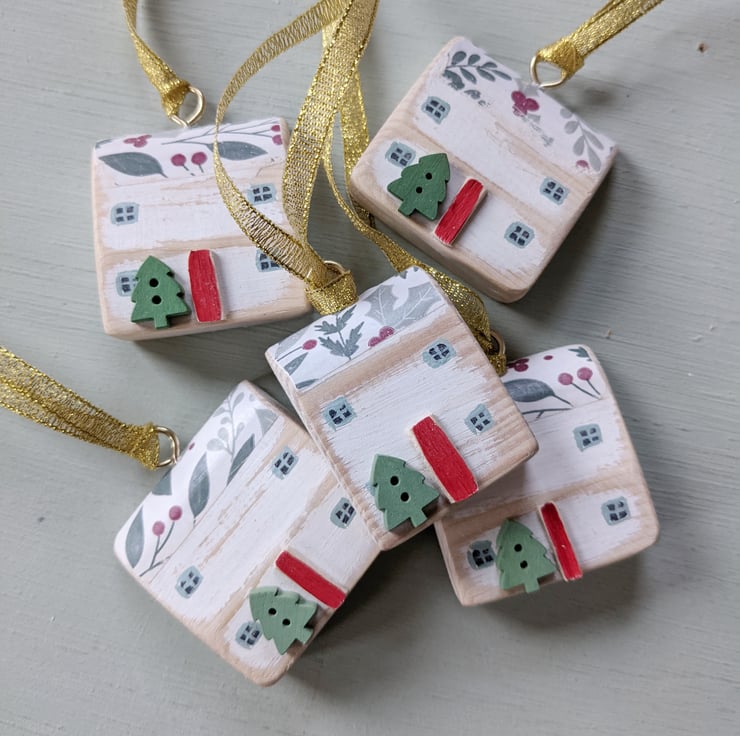 I have chosen two houses that compliment each other for this little set. Hang them together or give one as a gift!