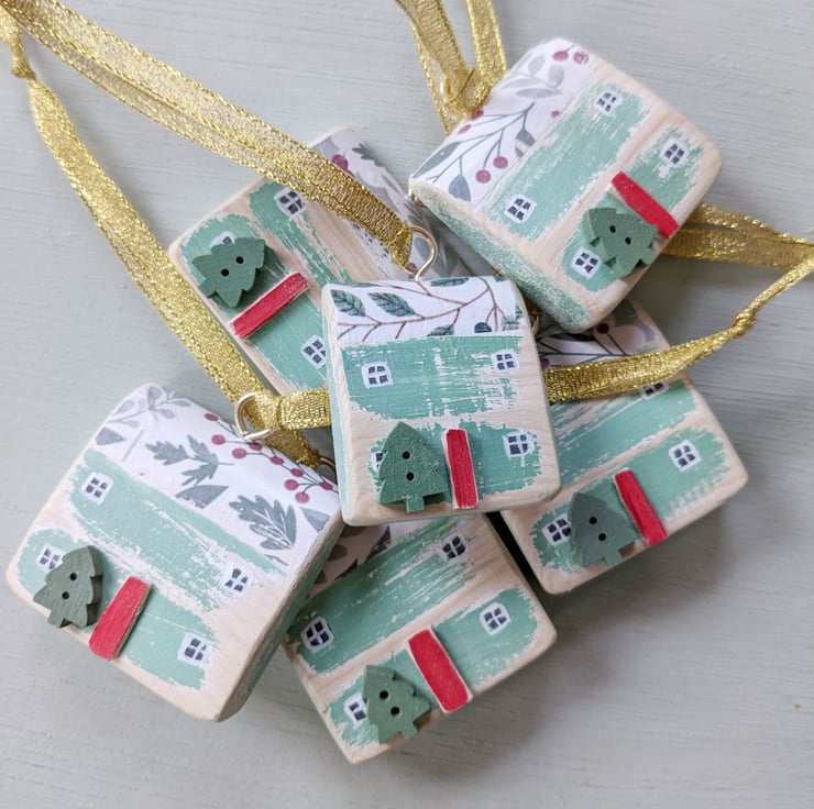 I have chosen two houses that compliment each other for this little set. Hang them together or give one as a gift!