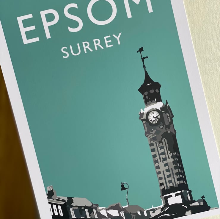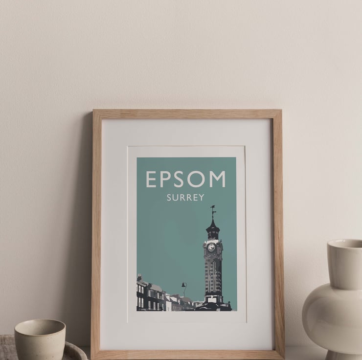Epsom Surrey UK TEAL Travel Print.