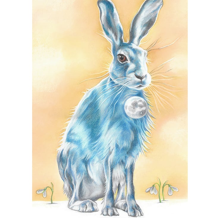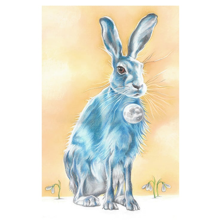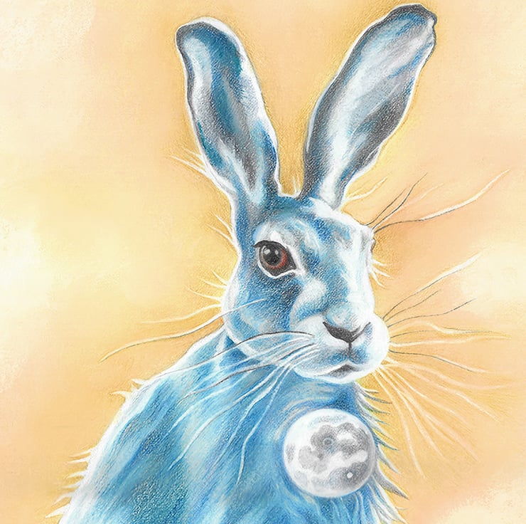 I used chalk pastel, pencil and coloured pencil to create this mystical feeling "Lunar Hare" illustration.