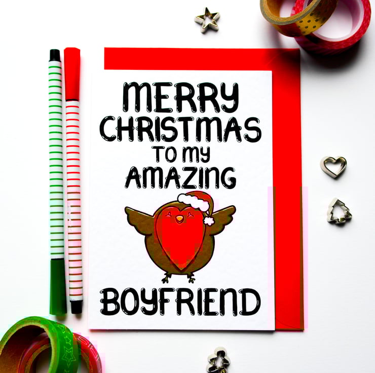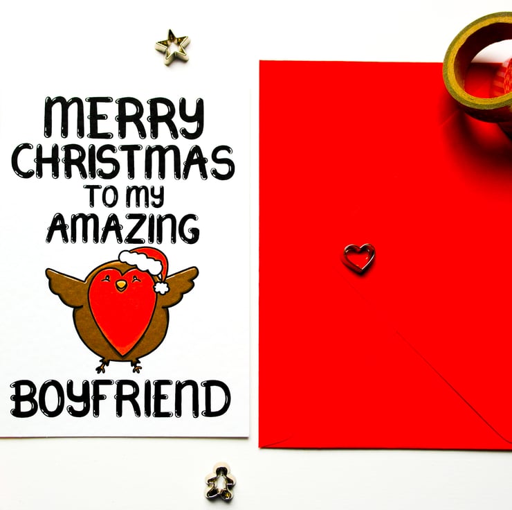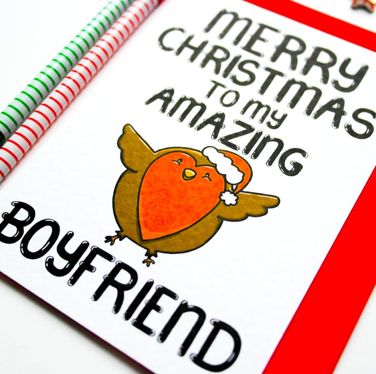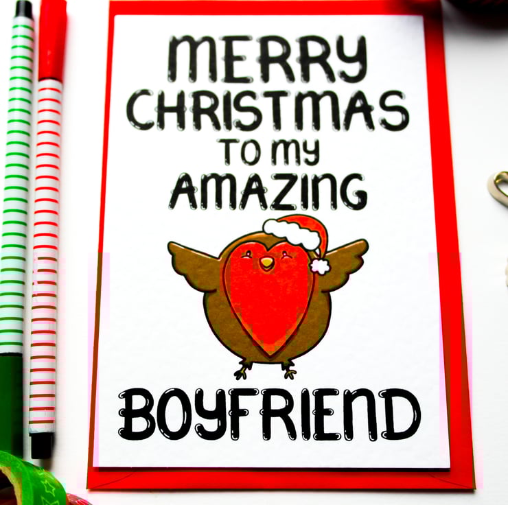 Greeting on front: MERRY CHRISTMAS TO MY AMAZING BOYFRIEND