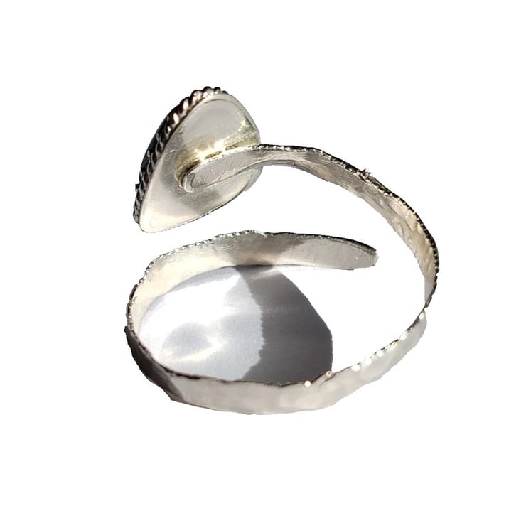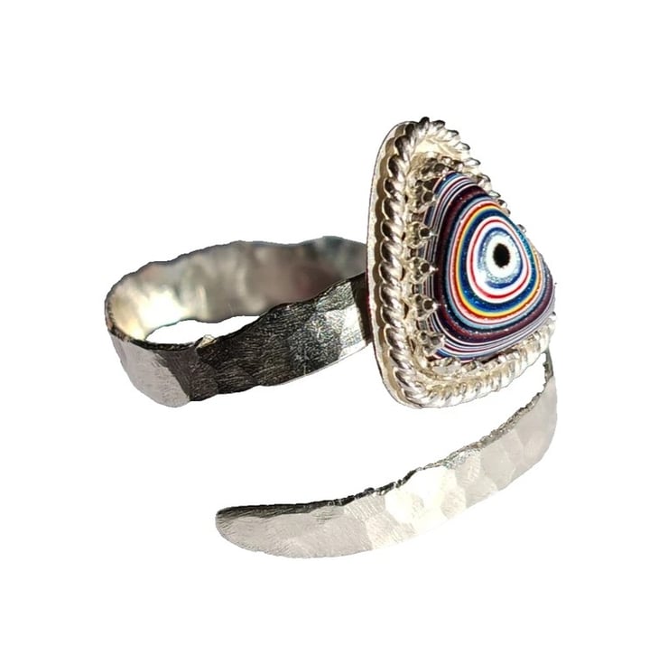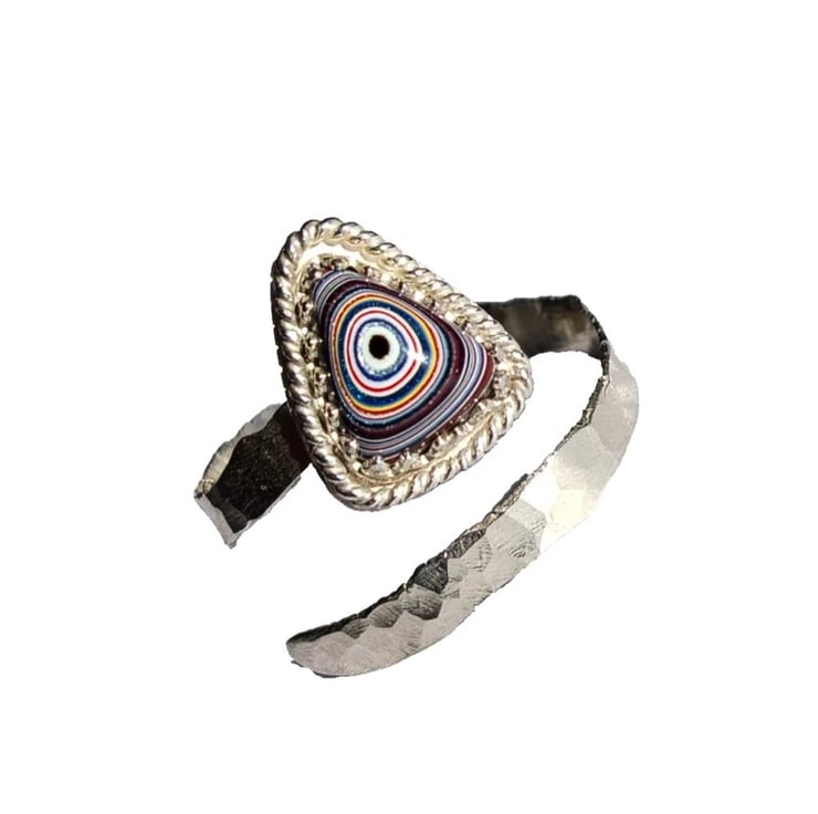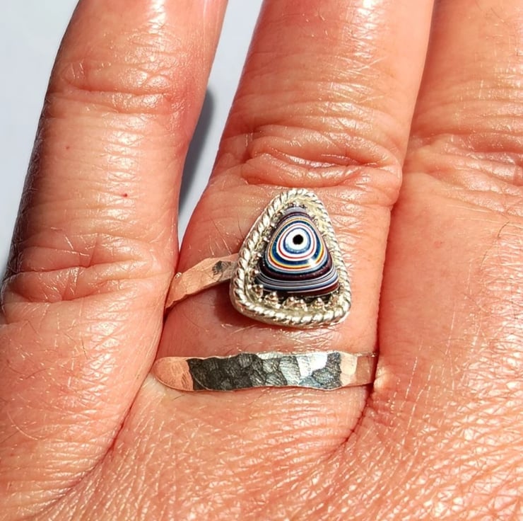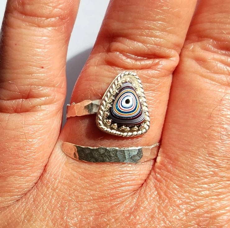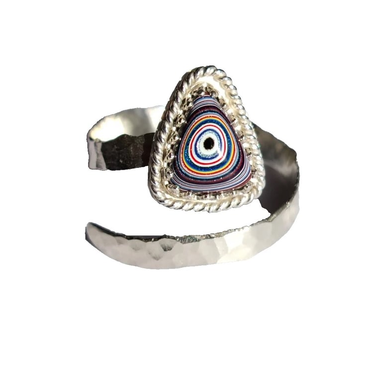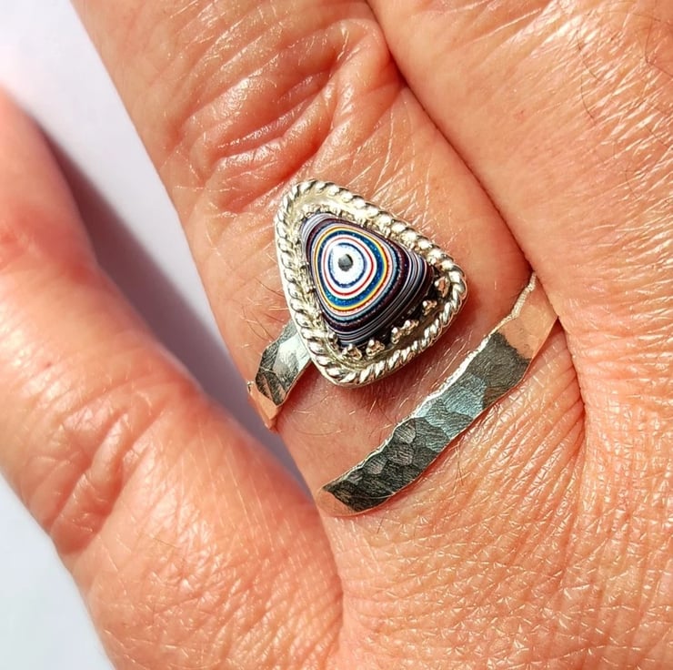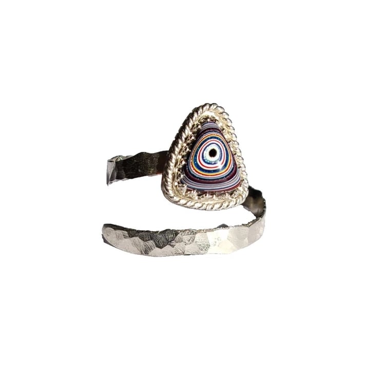 Fordite Adjustable Ring Sterling Silver Jewellery Gift Hammered Band Stacker