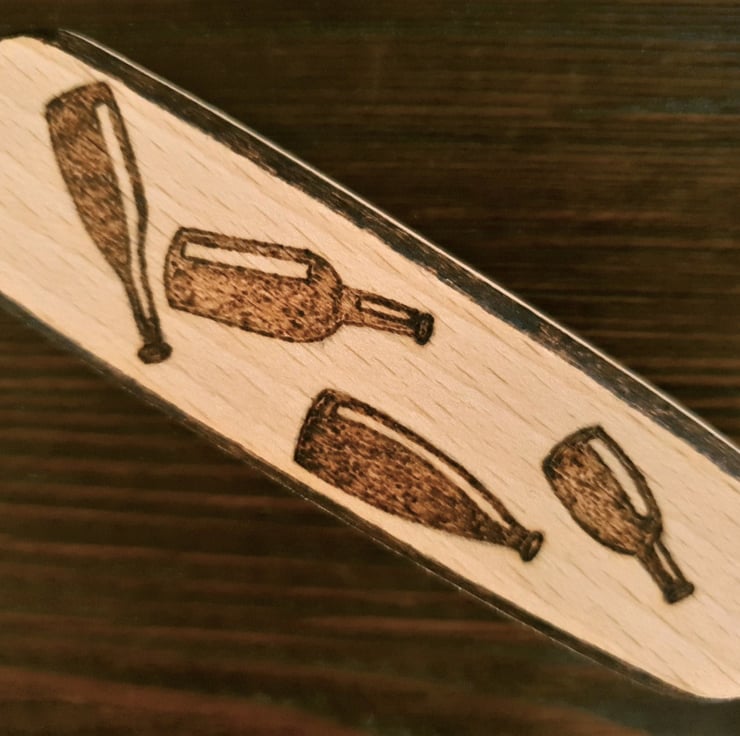 An Eye catching Bottles Pyrography design, means an end to scrabbling around your kitchen draw searching for something to use!