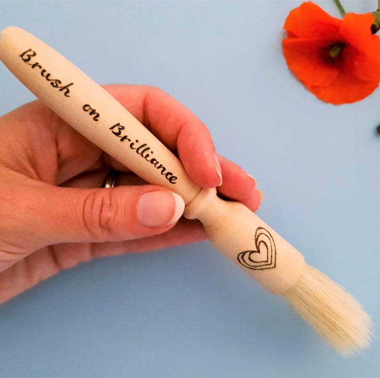 An Eco Friendly Utensil, this Pastry Brush with a heart motif and Brush on Brilliance Quote makes your cooking and baking more fun.