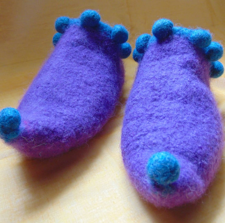 These fairy slippers are handmade of natural wool and features a bobble edging around the cuff and on the toes,