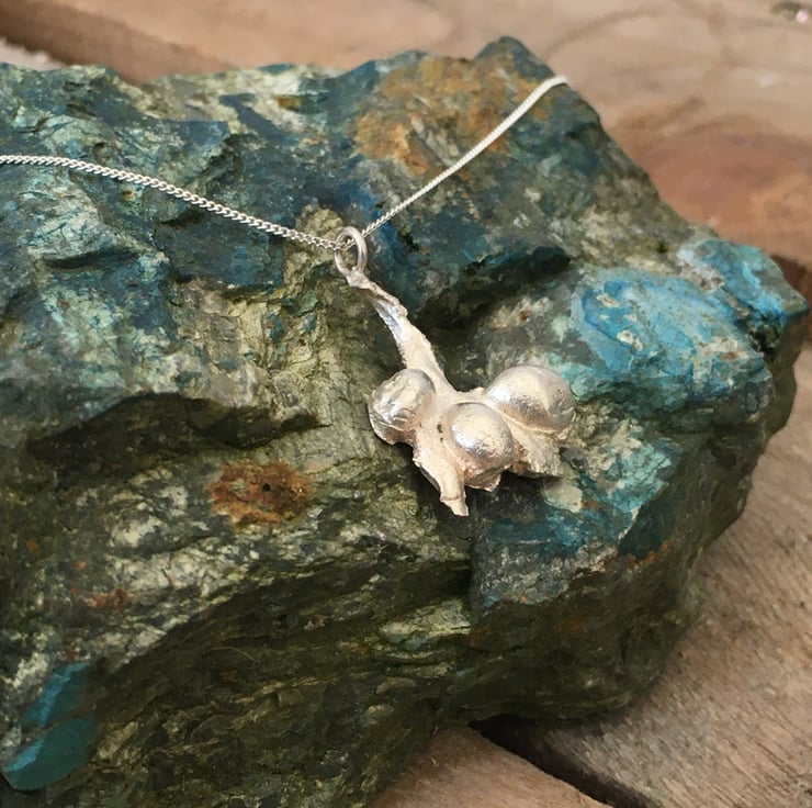 I love to use the interesting things I find on the beach for inspiration. Bladderwrack seaweed has beautiful shapes, as well as wonderful medicinal properties. I used a piece to make a silicon mould to produce this fine silver pendant. Quite a long process but enjoyable and definitely worth it for the results.