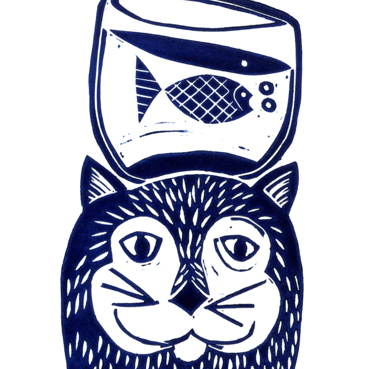 Mix pairs of cards for four cards; cards featuring reproductions of my linocut prints: Robin, Pear Pop and Cat & Fish.
