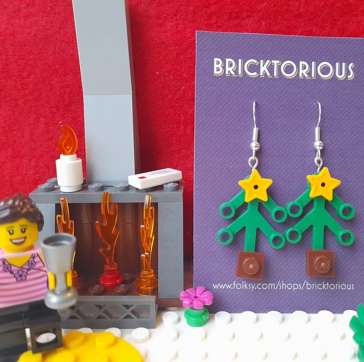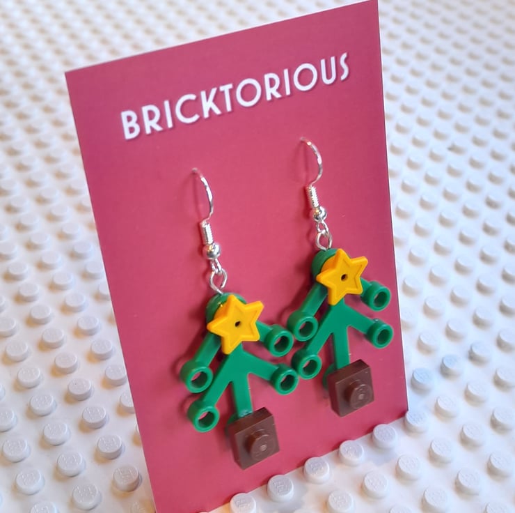 Check out these tree-mendous earrings! They are made using real Lego, and form a Christmas tree with a yellow star at the top of the tree, and you could even add your own 1x1 stud bricks as 'baubles' to personalise them! The tree measures about 3cm long, and 2cm wide. These make great little Christmas presents, perhaps for a teacher, schoolfriend or for a Secret Santa gift. The earring hooks are silver plated, and all the Lego has been preloved and upcycled so they are eco-friendly too. These earrings come gift-wrapped in tissue paper.