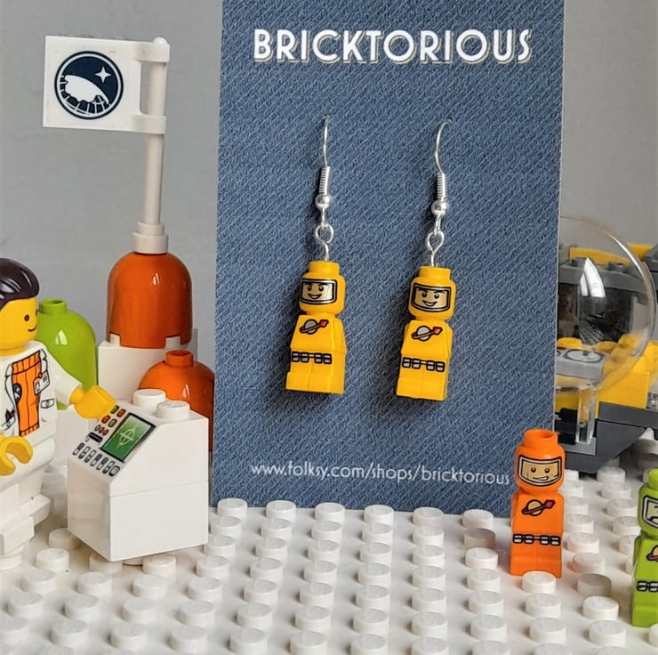 These earrings are out of this world! This super-quirky earrings feature a little astronaut microfigure, made from real Lego. They are bright yellow, and would be a perfect pressie for any space-loving, astronaut wannabe. The earring hooks are silver plated, and the astronaut is about 2cm tall; these lego figures have been preloved and upcycled so they are eco-friendly too. These earrings come gift-wrapped in tissue paper.