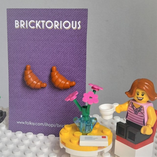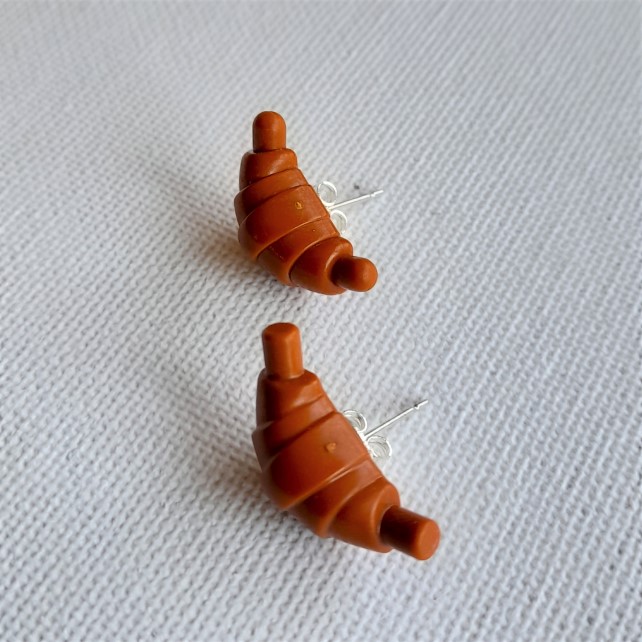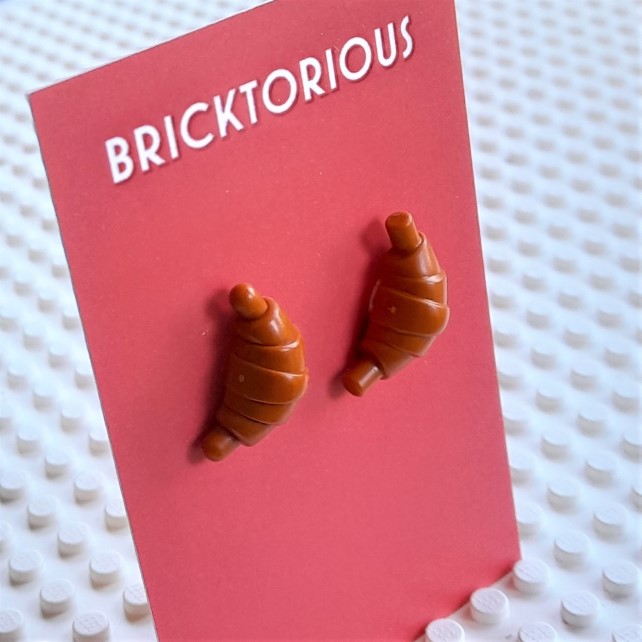 Oh la la! Seriously, who doesn't like a croissant? And what better way to celebrate this delicious breakfast than to wear it as an earring. A Lego earring, no less. These tasty studs feature a mini croissant, about 2cm long, made from real Lego. The earring posts and butterflies are silver plated; the pieces have been upcycled so they are eco-friendly too. These earrings come gift-wrapped in tissue paper, making them the perfect present for the friend who has everything. Except a Lego croissant earring.