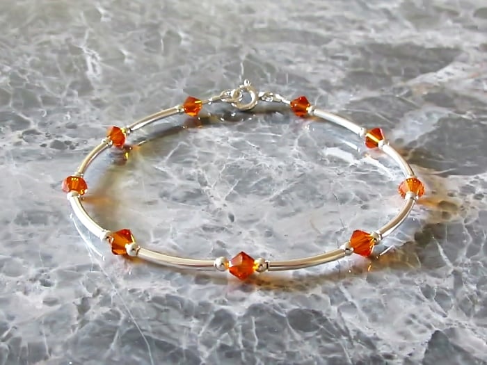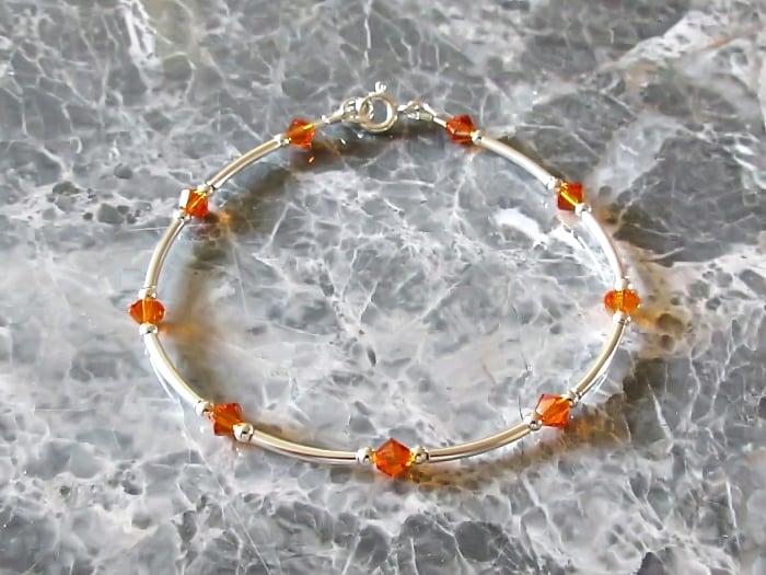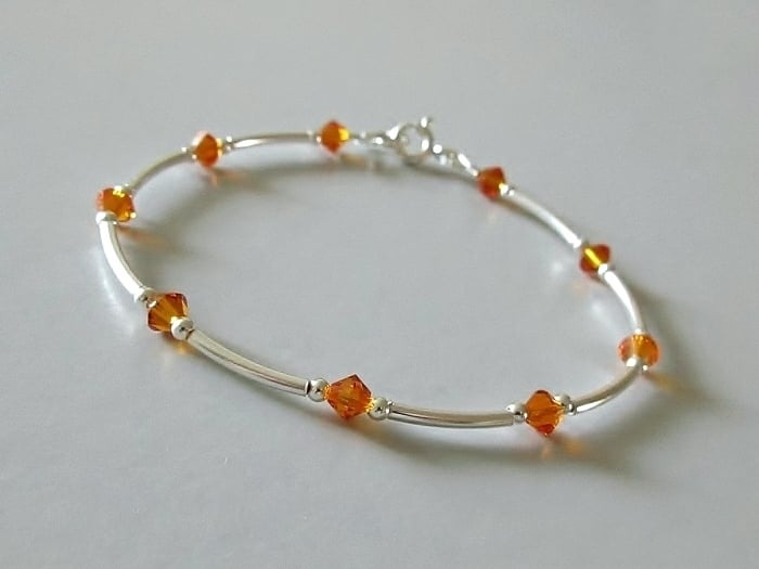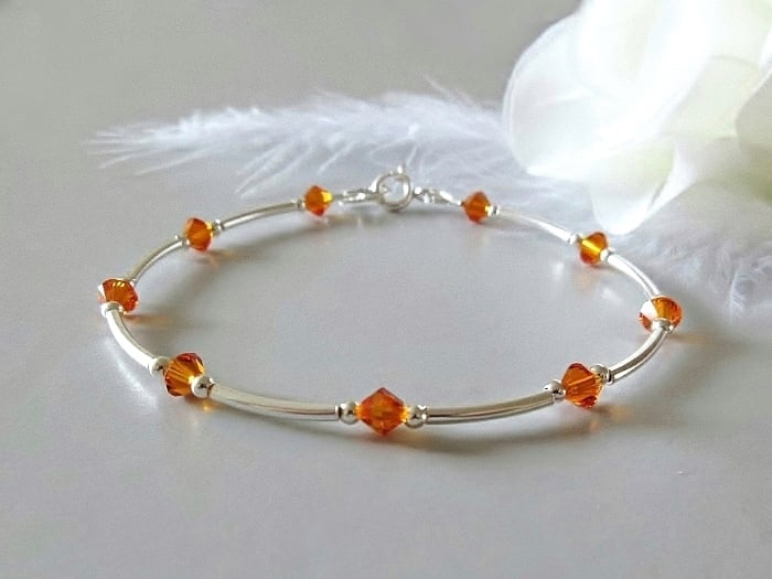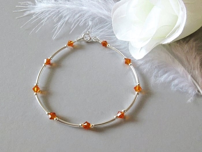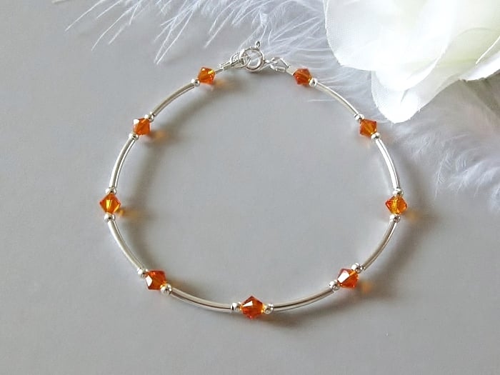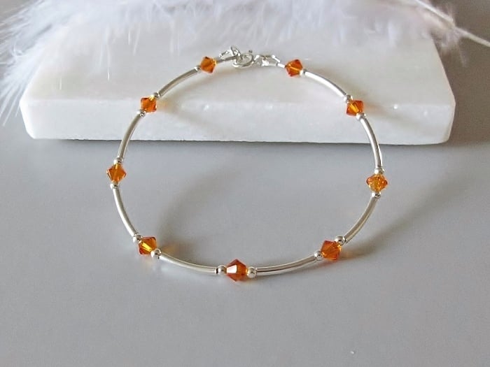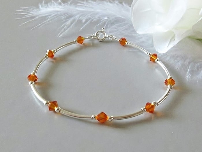 A bangle style Sterling Silver bracelet, handmade with the world's finest crystals from Austria in a beautiful glowing tangerine colour.