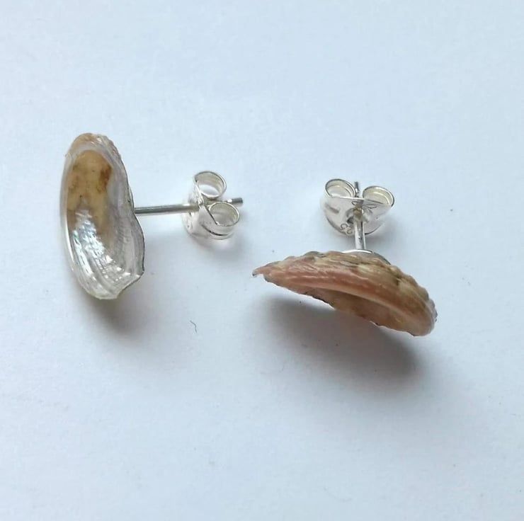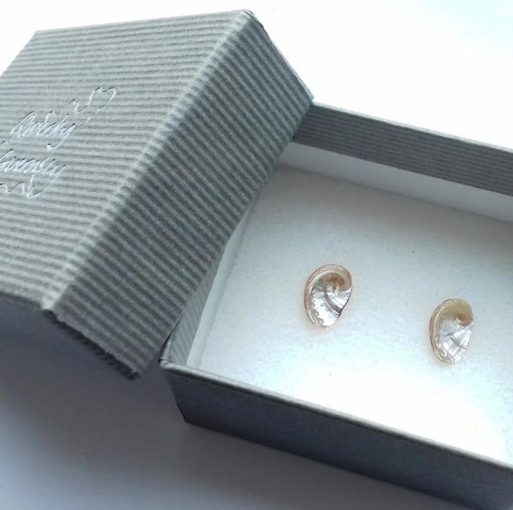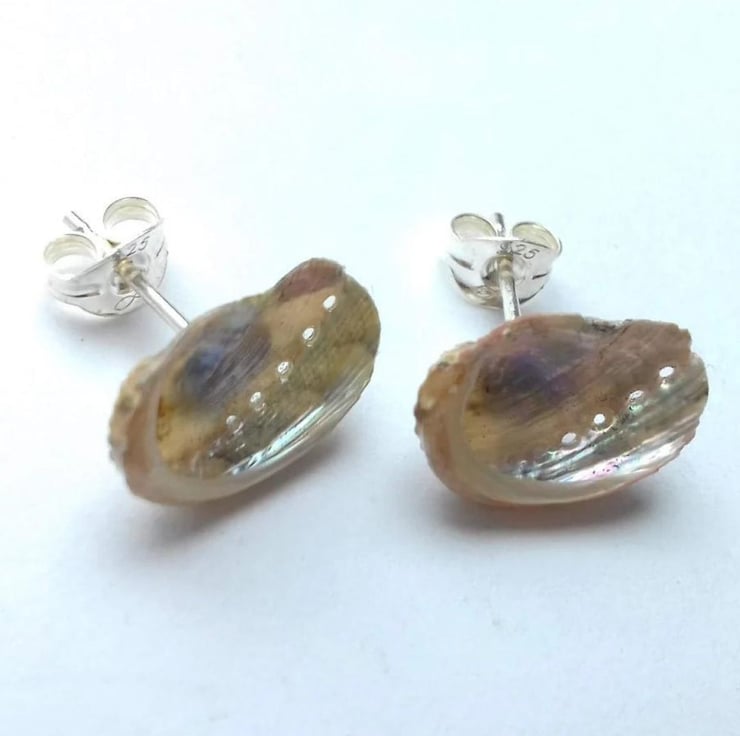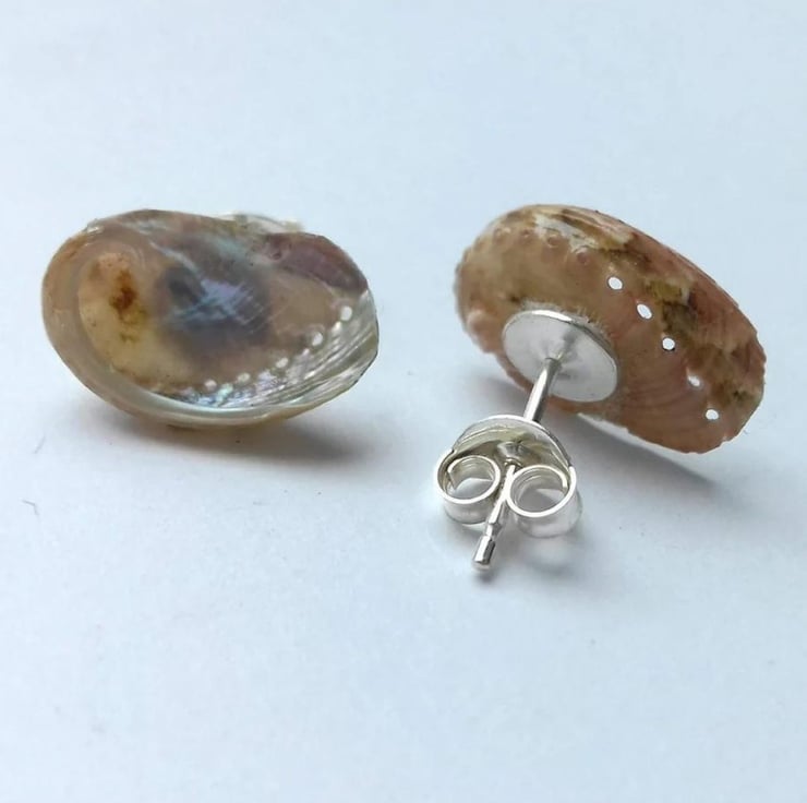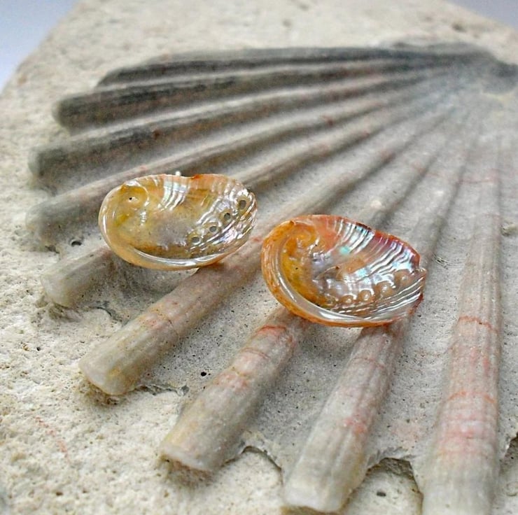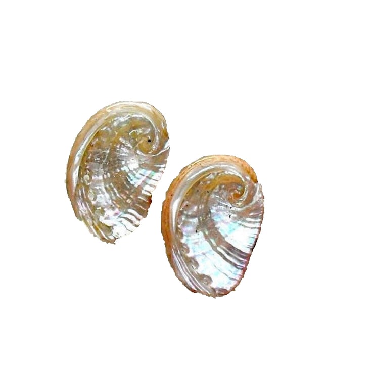 Real teeny tiny ormer shell studs with sterling silver post and scroll.
