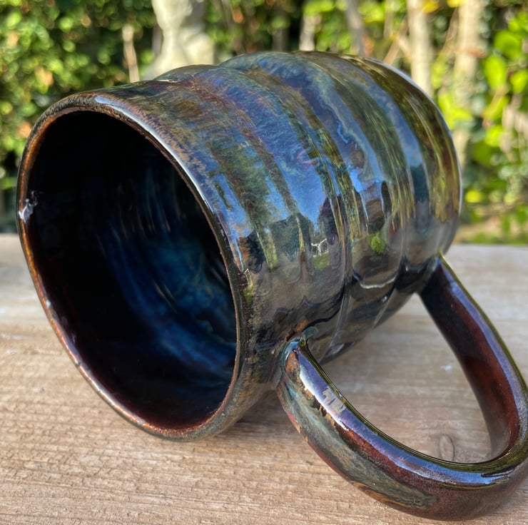 The mug has been thrown on a pottery wheel in stoneware clay. I use this clay as it is a stronger more resilient clay, making it perfect for everyday functional pottery use.