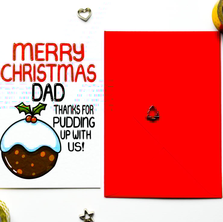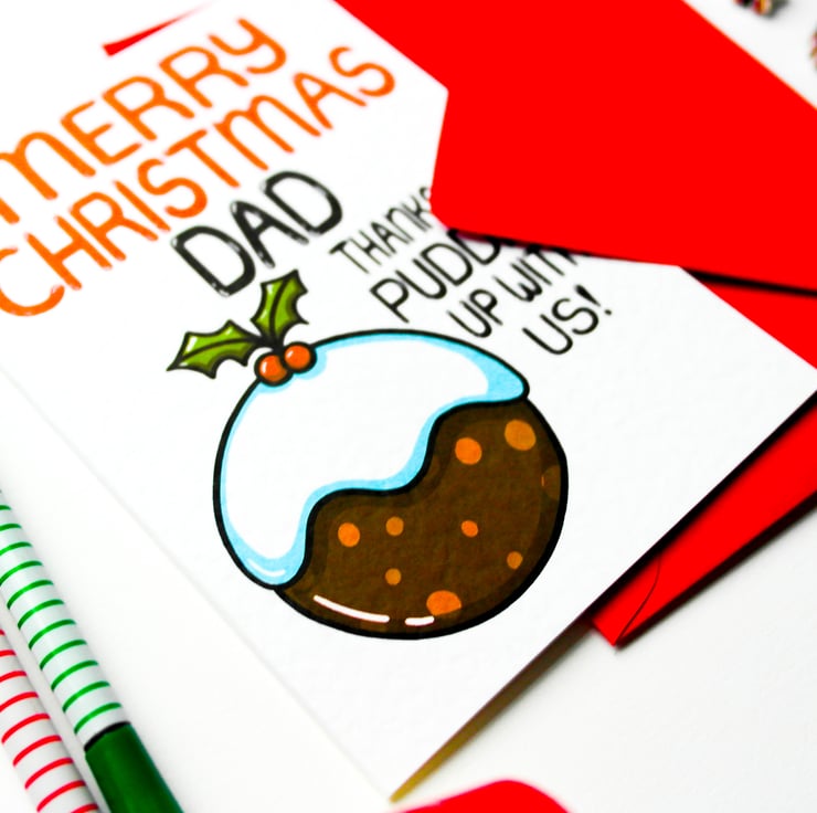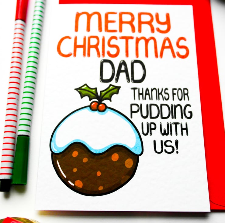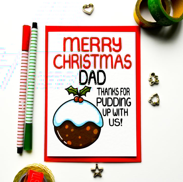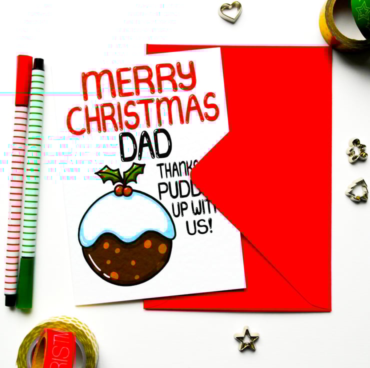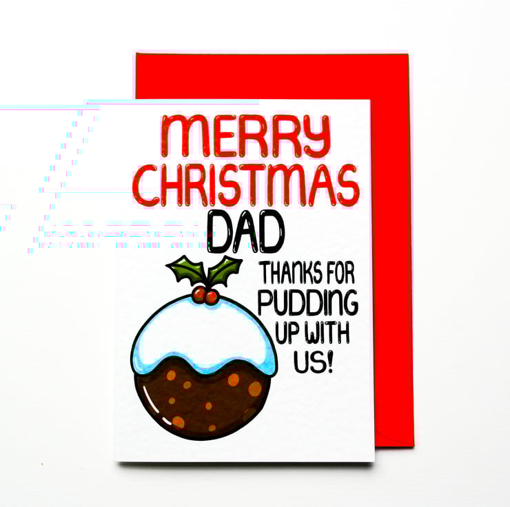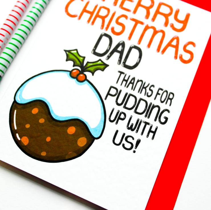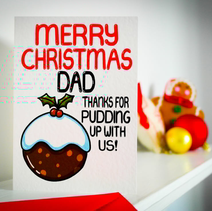 Greeting on front: MERRY CHRISTMAS DAD THANKS FOR PUDDING UP WITH US!