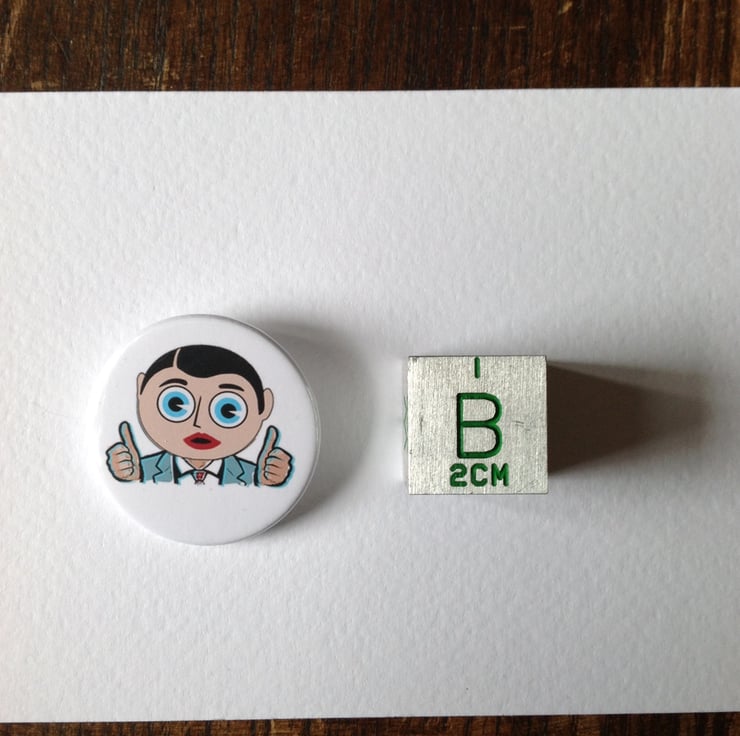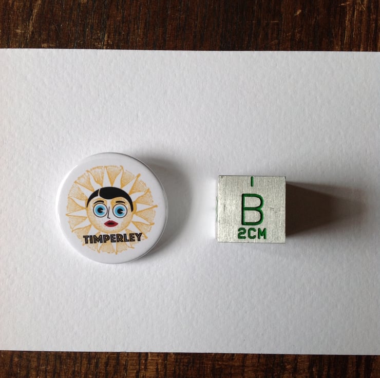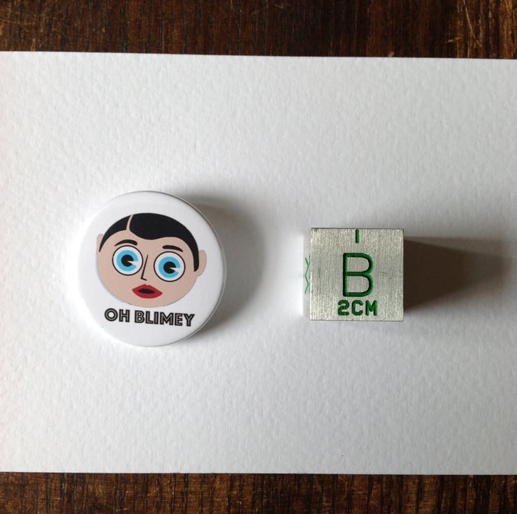 Our badges are 38mm in diameter, which is about the size of a 50p coin. They are hand produced in our studio in Leicestershire using quality manufactured components.