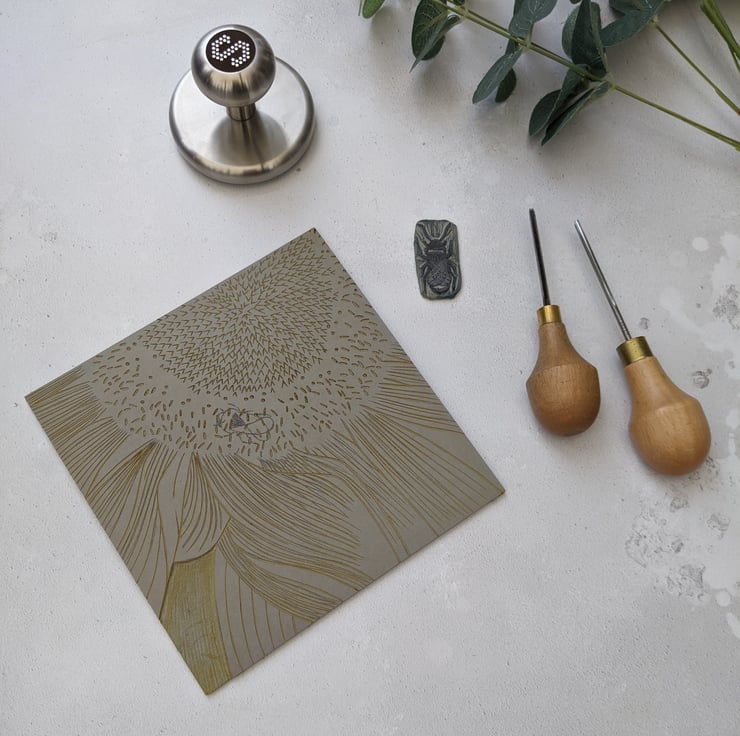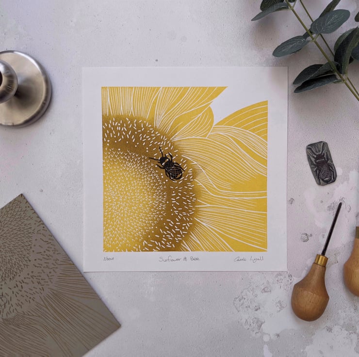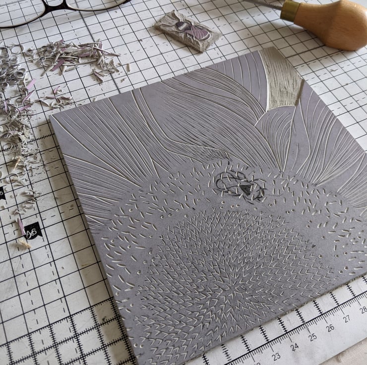 Each design is created using hand carved plate of lino carved with specialist tools and printed with a hand wound press. Every print is unique and completely individual due to its handmade nature. It's always so satisfying peeling back to paper to reveal to final print.
