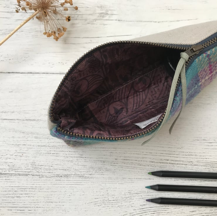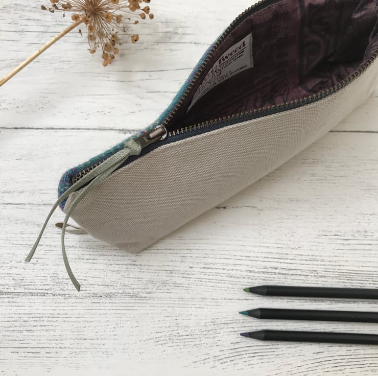 Harris Tweed and Scottish Linen Pencil Case, Brush Case, Cosmetic Bag