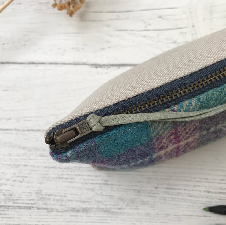 This unique zipper pouch is made from Harris Tweed, with Scottish Linen Union on the reverse. It would make an ideal gift or a treat for yourself, and is perfect for pencil and pens, make up brushes or cosmetics