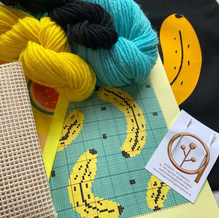 Here they are at last! My stitch kits. These are tapestry stitch kits available in 2 designs, the banana and the watermelon! Fun colourful and a great activity for you to take some time out and relax........