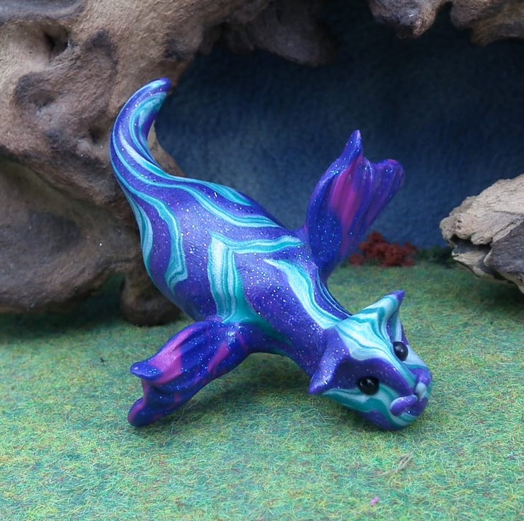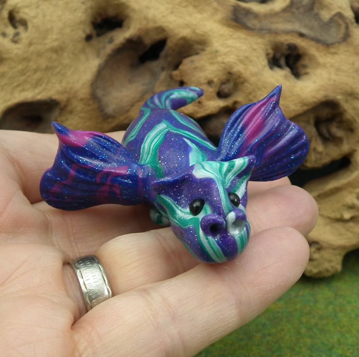 A 'one of a kind' creation having been entirely handmade without the use of moulds here at my studio on the Sussex Coast. Modelled with artist blend polymers before sealing with lacquer, Raff is three inches from snout to tail ...