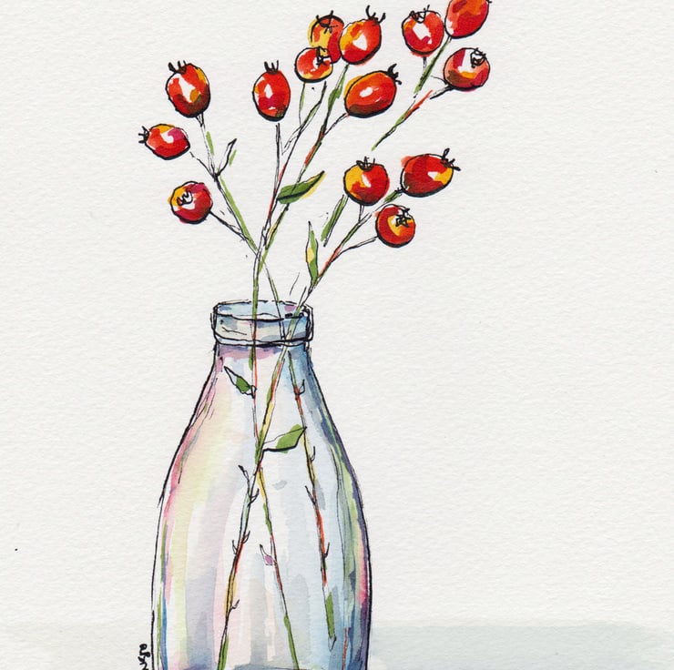 I am an artist who is inspired by the beautiful East Devon scenery and also what I grow in my own garden - so finding these little sprigs of seasonal joy that fitted into the pots I've been collecting has been especially rewarding.