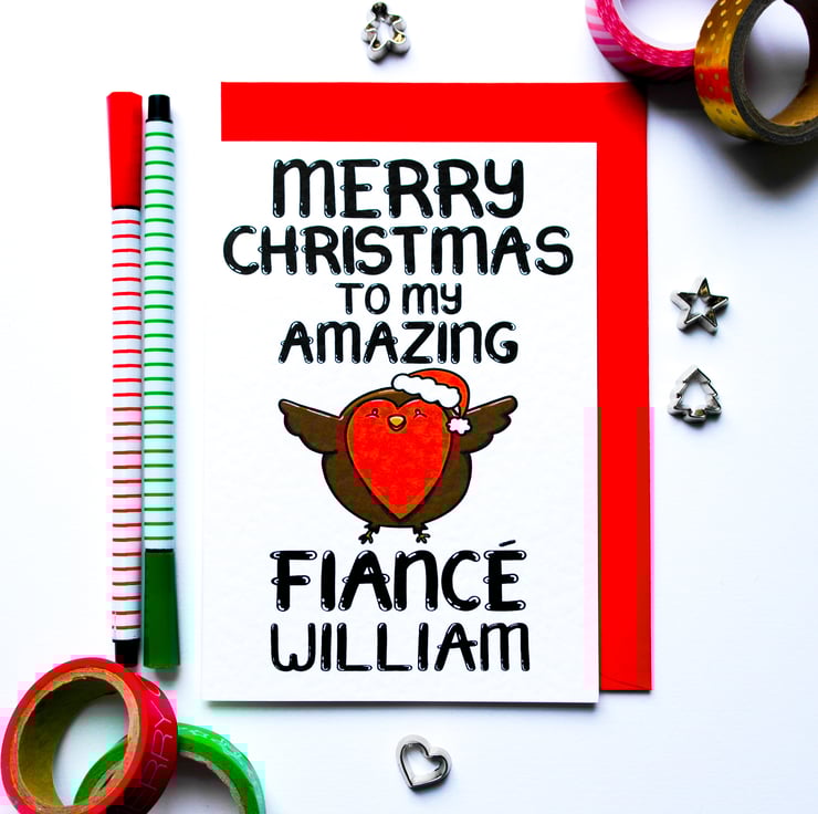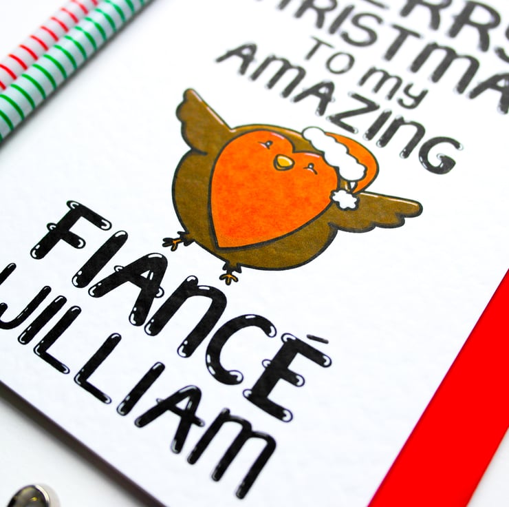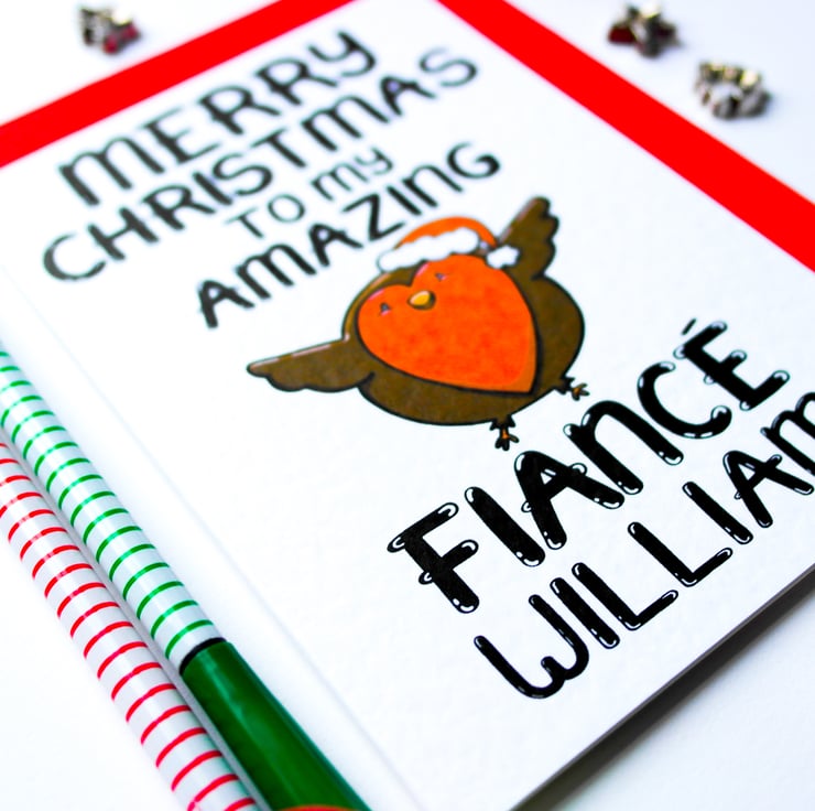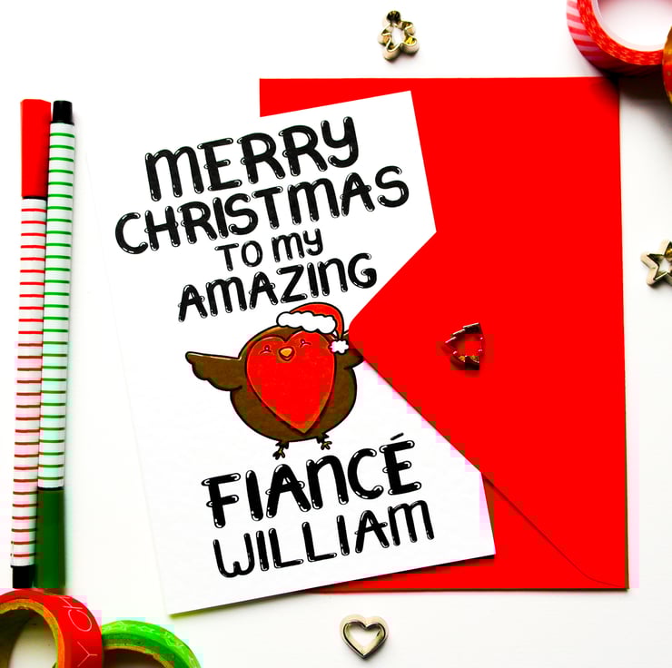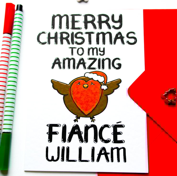 Greeting on front: MERRY CHRISTMAS TO MY AMAZING FIANCE (NAME)