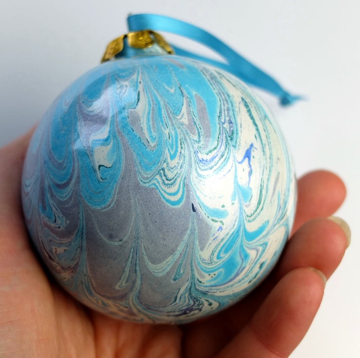 This is a large ceramic bauble - 7.5cm in diameter and it is heavy at 145 grams.