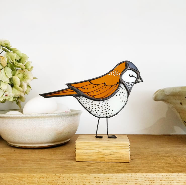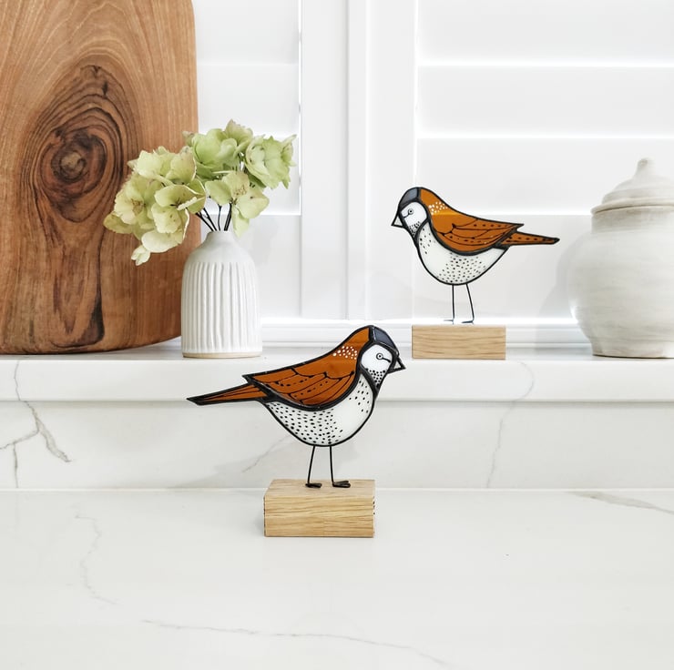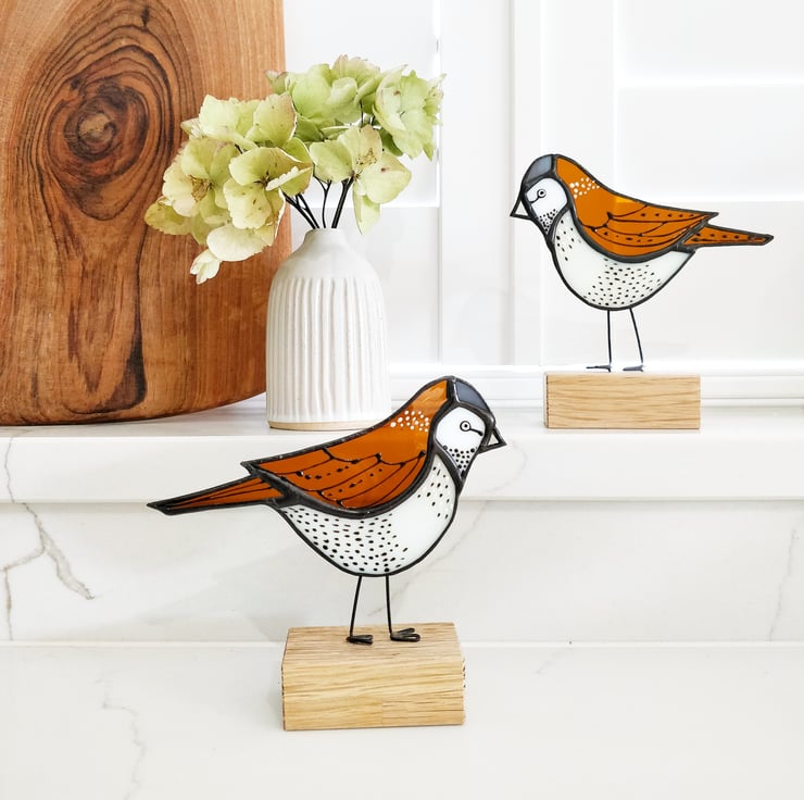 Beautifully illustrated and handcrafted in stained glass this little suncatcher would make a gorgeous, fun addition to any home. Whether displayed on your favourite shelf or shinning bright in front of your window. This little bird is a great way to introduce some colour and create a more contemporary, curated space within your home.