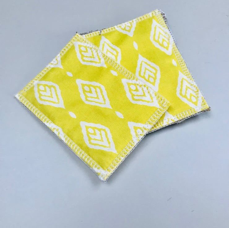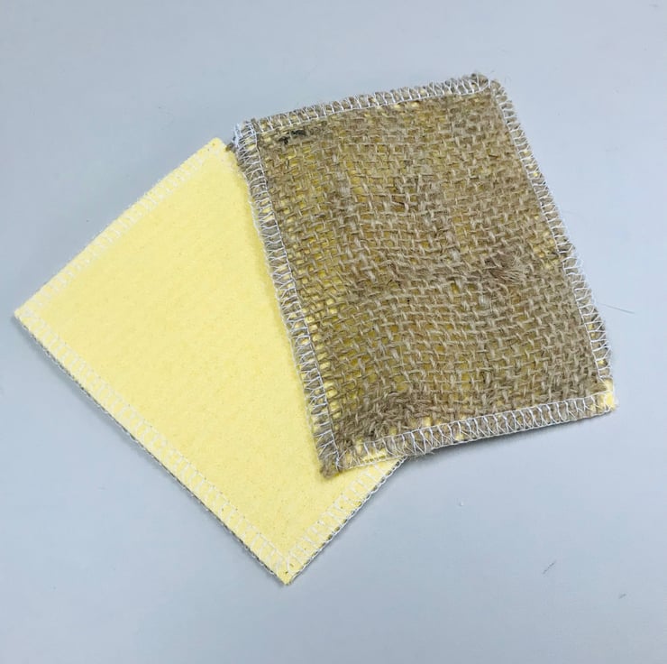 REFORM: made from cellulose inner, 100% cotton top layer and one has a hessian bottom layer for extra scrubbing power. All fabrics used are waste or offcuts, so limited in quantity and giving them a use rather than landfill.