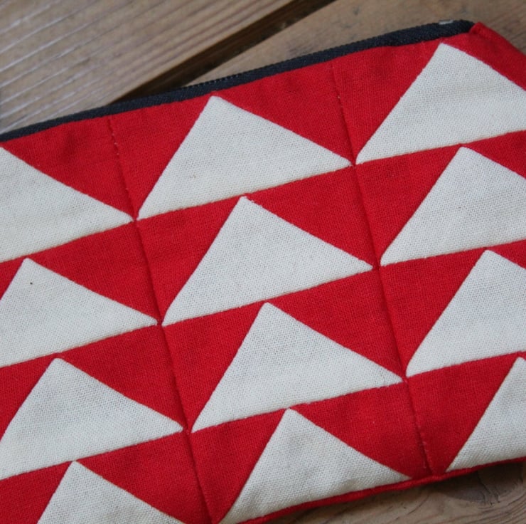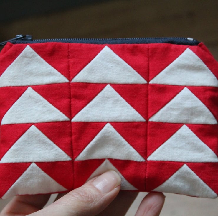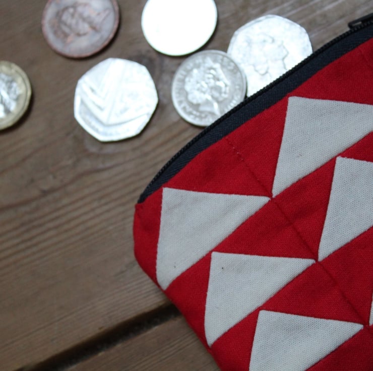 Handmade small purse in a flying geese design, perfect size to keep cards and change.