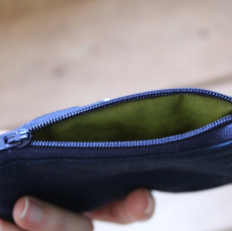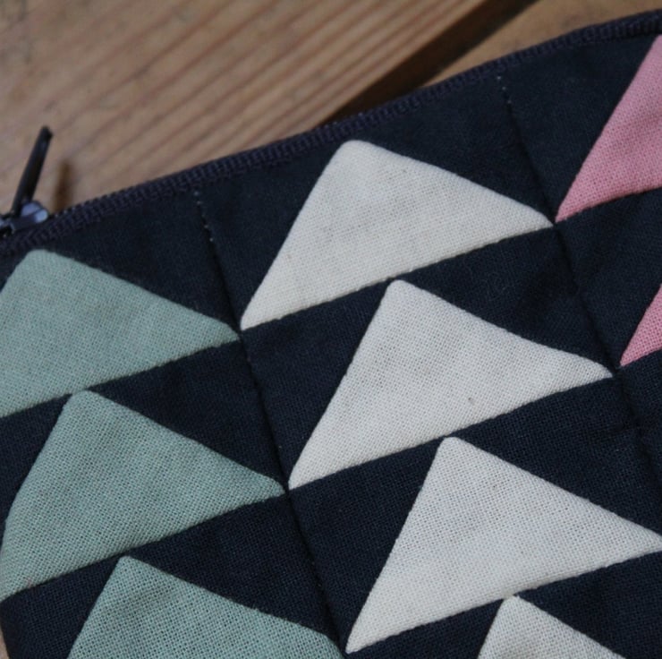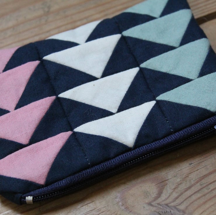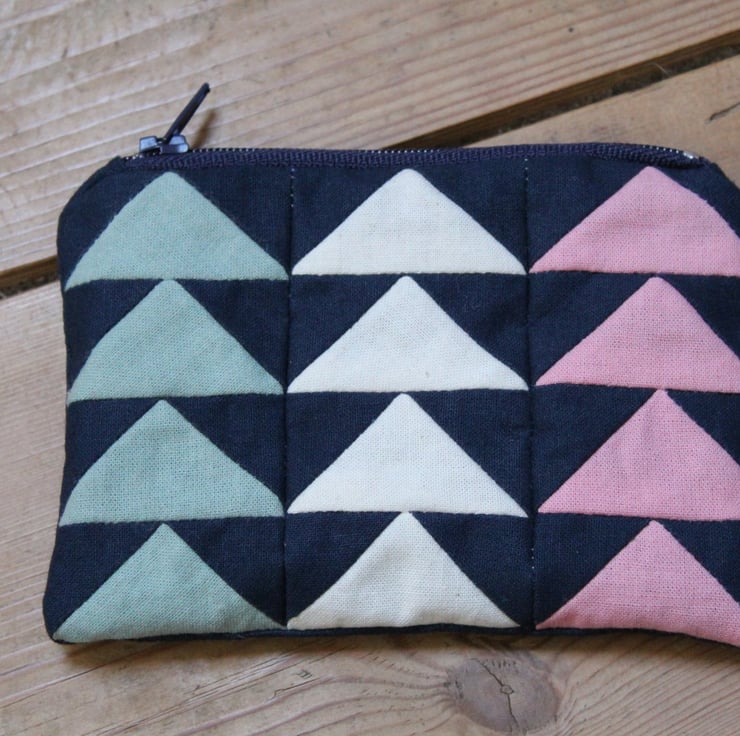 Handmade small purse in a flying geese design, perfect size to keep cards and change.