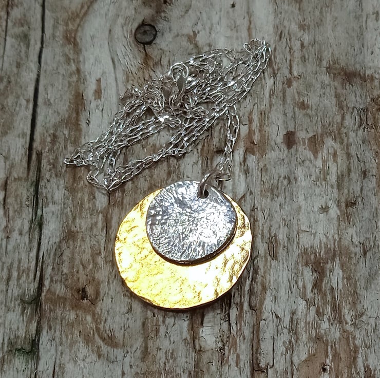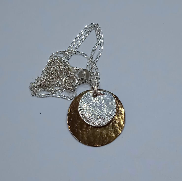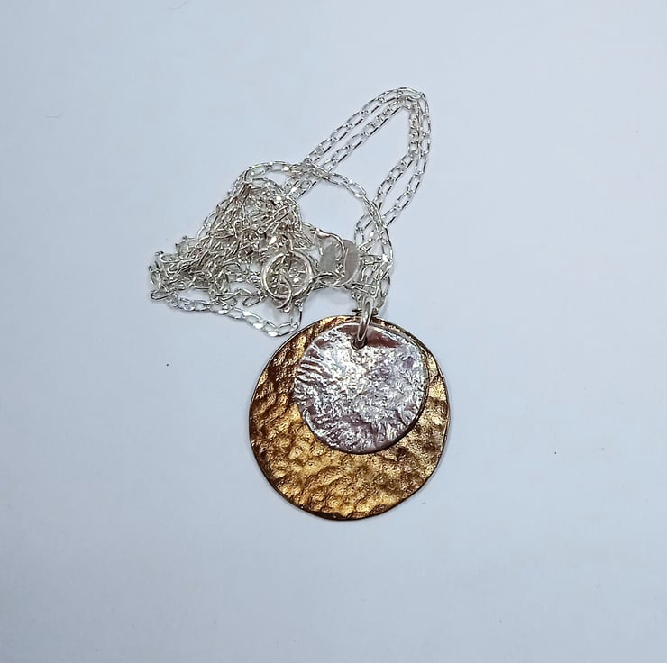 This beautiful little pendant combines reticulated sterling silver with coloured titanium which really catches the light. Both of these processes result in a unique, one of a kind piece so no one else will have one exactly the same.