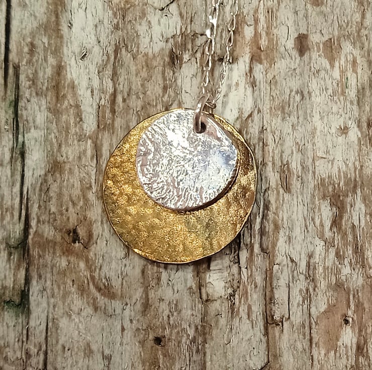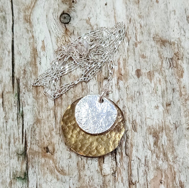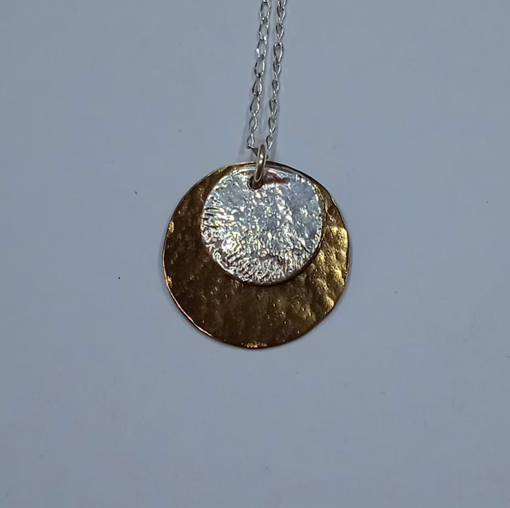 I have hand sawed a disc from titanium sheet and given the surface an attractive hammered finish to create texture and polished finish before colouring.
