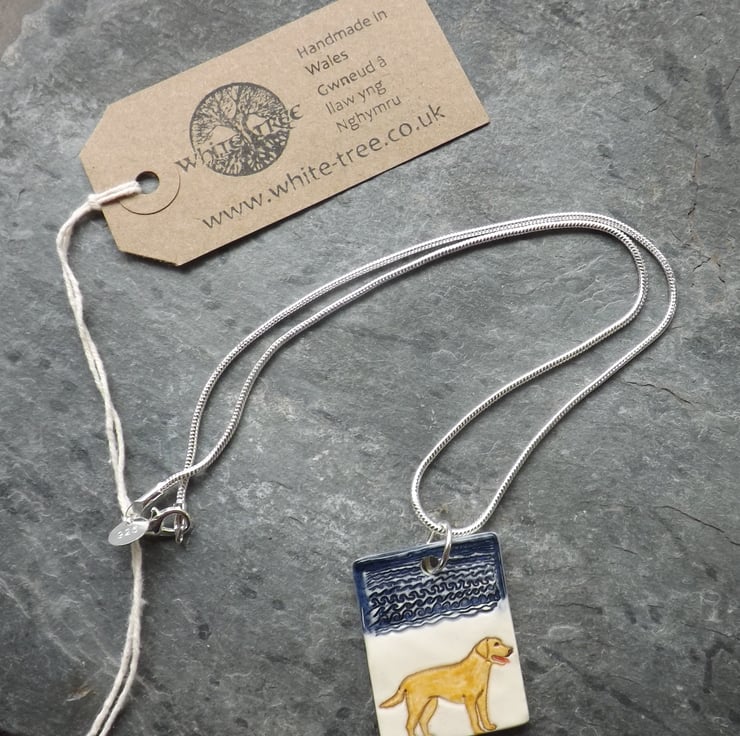 Handmade Ceramic golden Labrador Retriever dog pendant