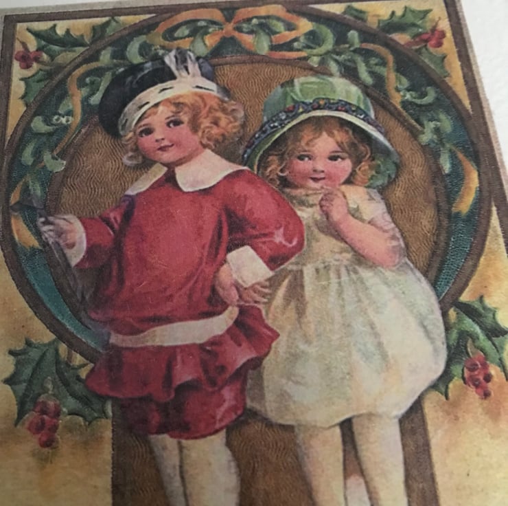 I love Christmas and I love old images, especially of children so, when I saw this napkin, I just had to make something very simple with it, to give the image the starring role.