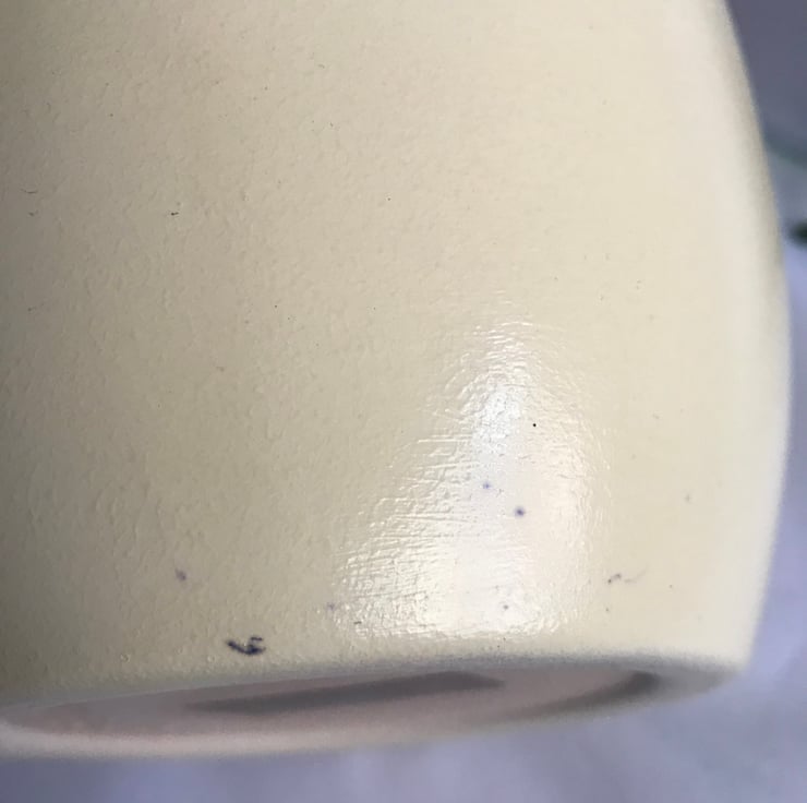 As I came to list this lovely pot, I was disappointed to find that there are some marks on the back near the base (see photos), presumably from being rubbed against something in the same box whilst in storage.