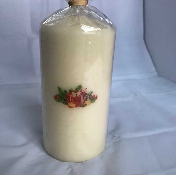 On the back of the candle, I have applied a smaller image of gifts amongst festive foliage for interest.