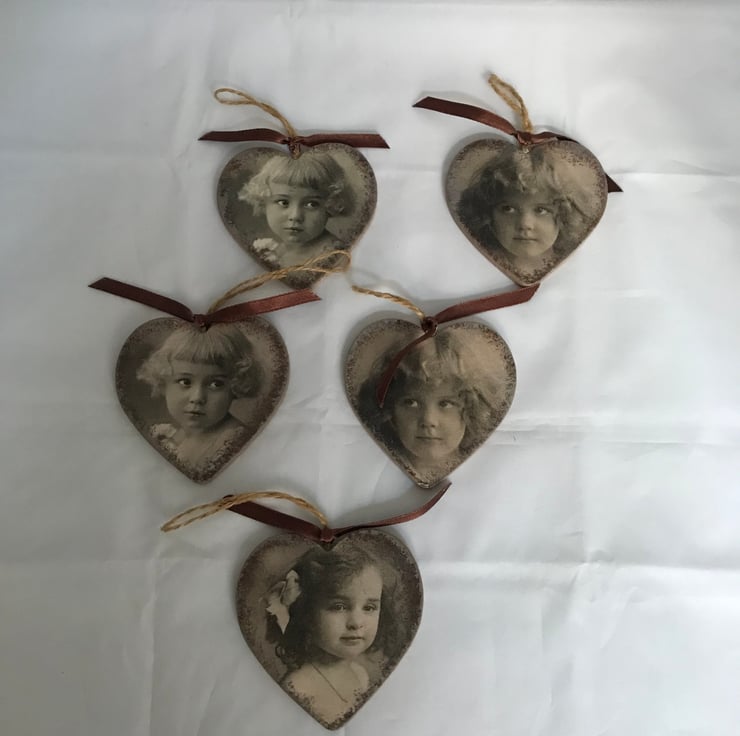 It would be wonderful to know more of these three little girls, and whether they lived long and happy lives. But I am pleased to continue their childhood by using their sweet images on my decorated hearts.