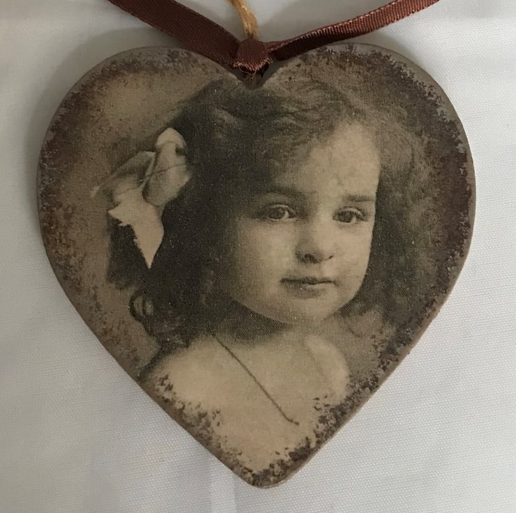 It would be wonderful to know more of these three little girls, and whether they lived long and happy lives. But I am pleased to continue their childhood by using their sweet images on my decorated hearts.