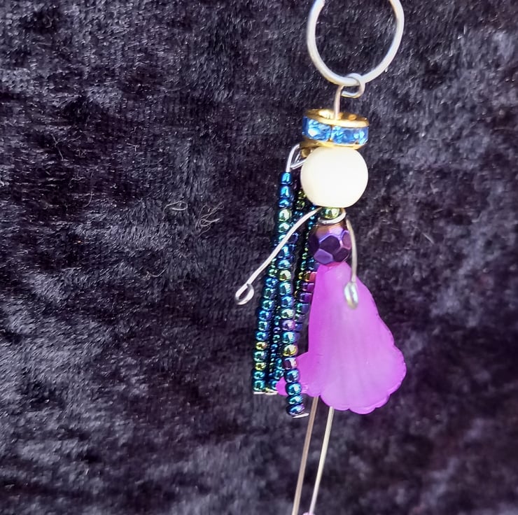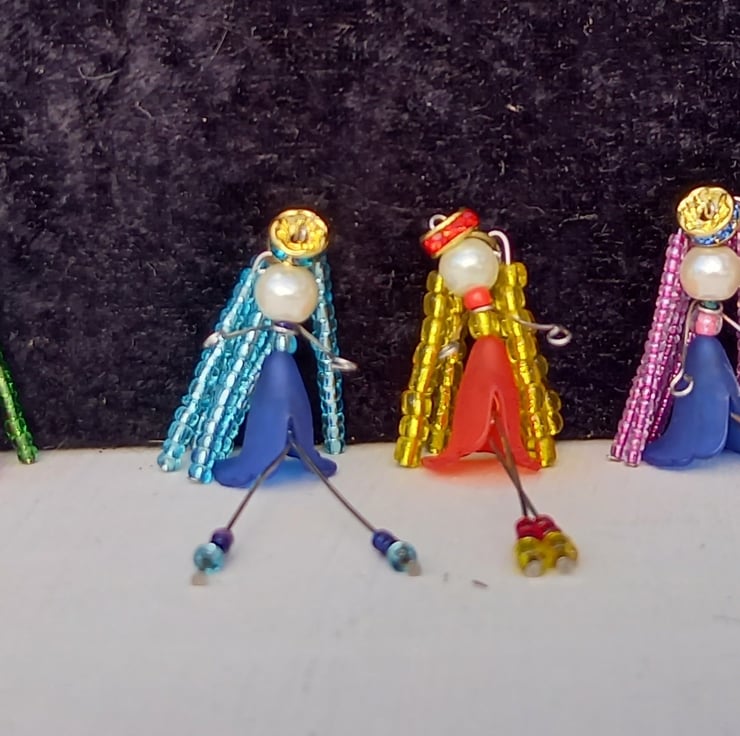 I used wire and glass beads to make this little lady angel hanger she has an acrylic skirt and diamante halo length 7cm