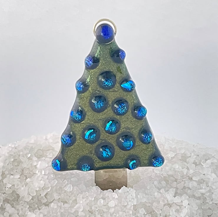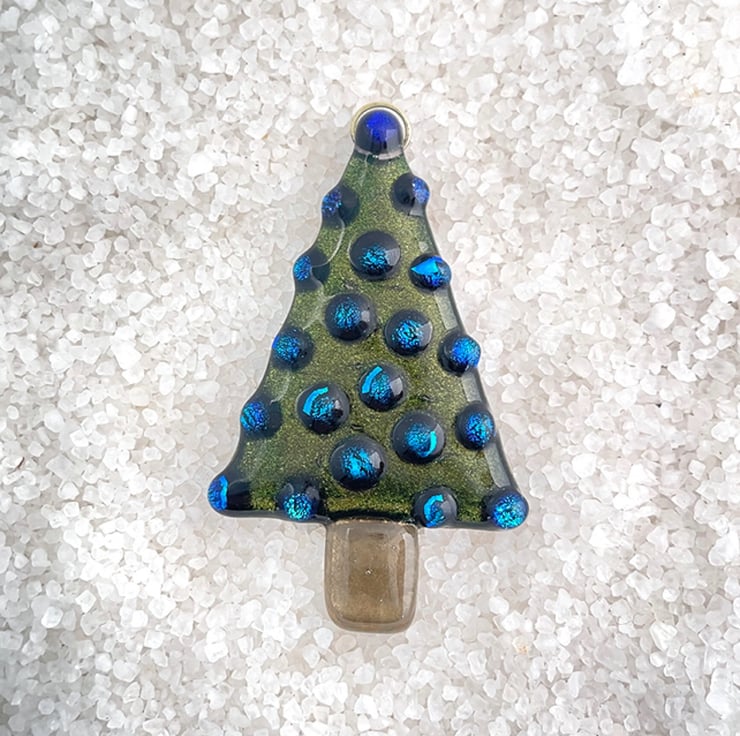 Created from layered Bullseye glass in my Whitstable workshop. This spotty tree has a gorgeous sparkly pink colour scheme with an iridescent brown trunk and a sparkly top.
