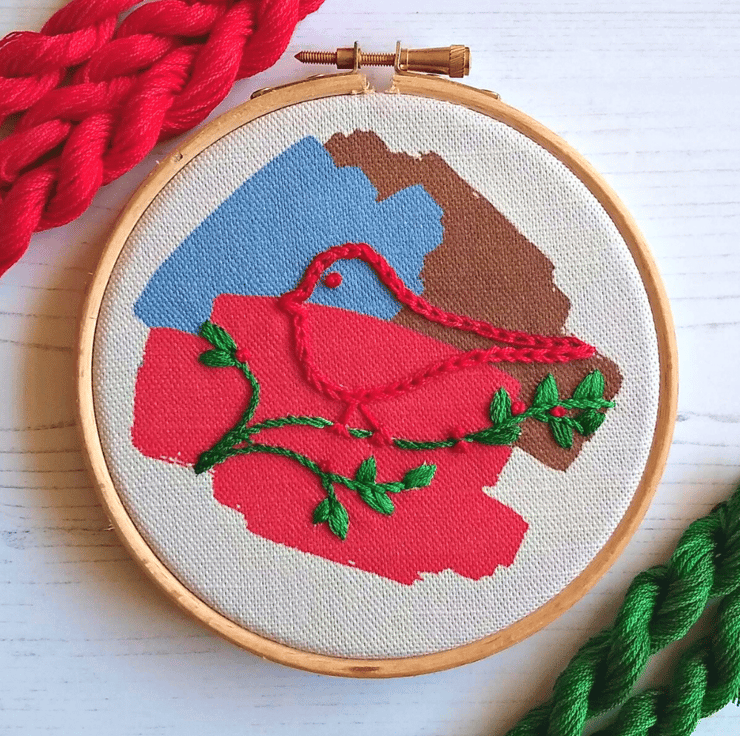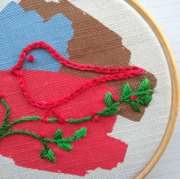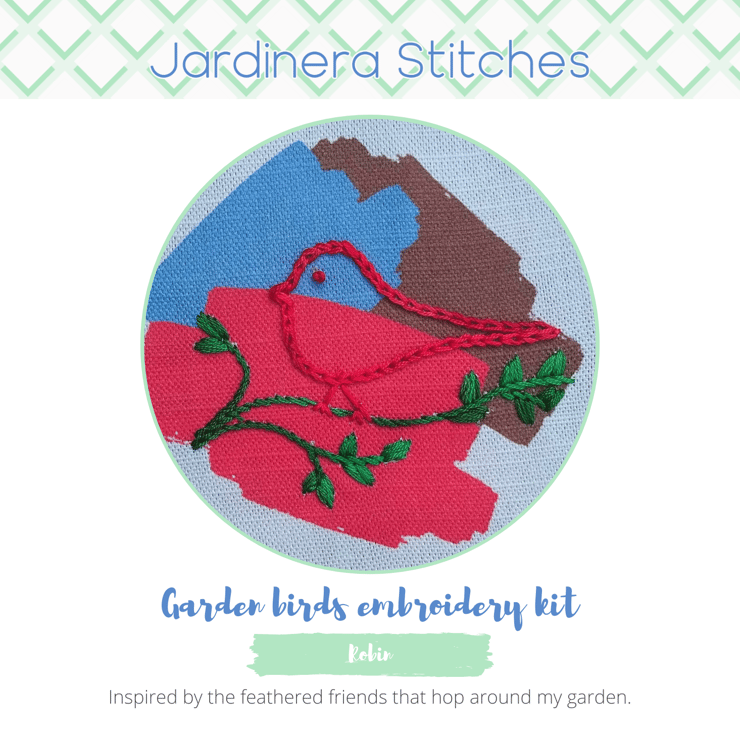 I chose this robin design for a Christmas embroidery kit because what is more festive than bright reds and greens!