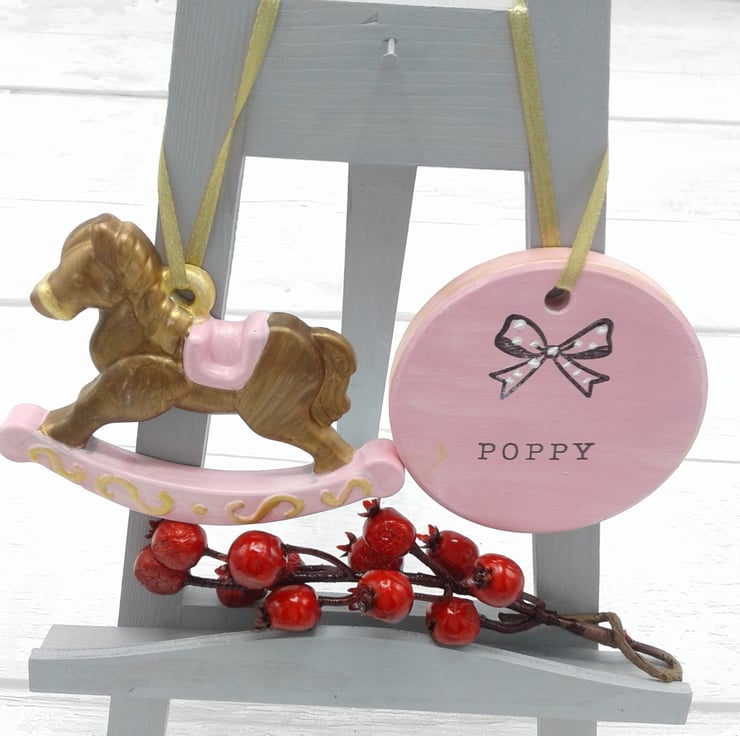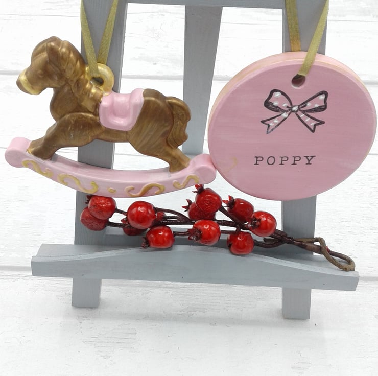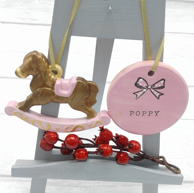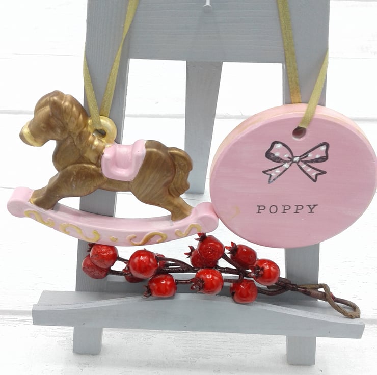 Comprising of ceramic rocking horse and personalised circle.