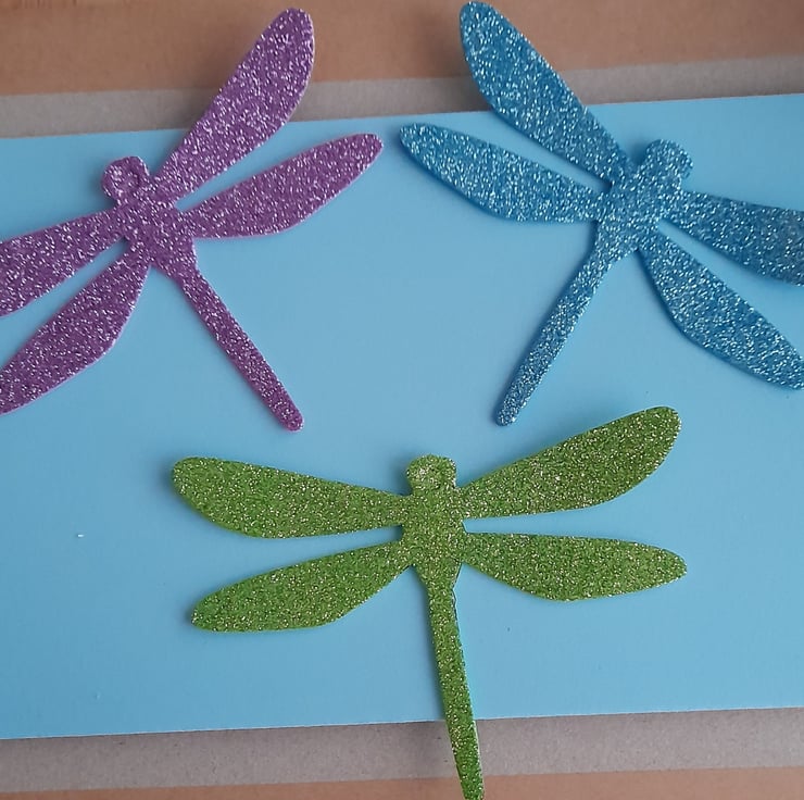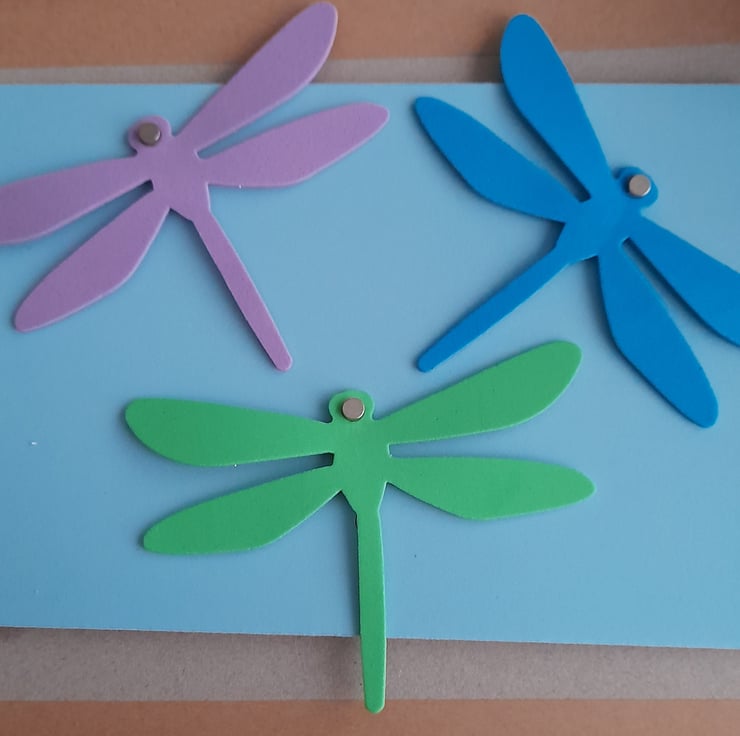 Set of 3 sparkle foam dragonfly magnets.