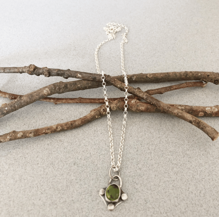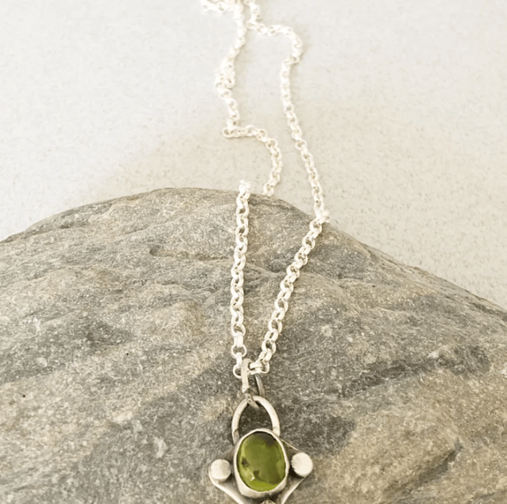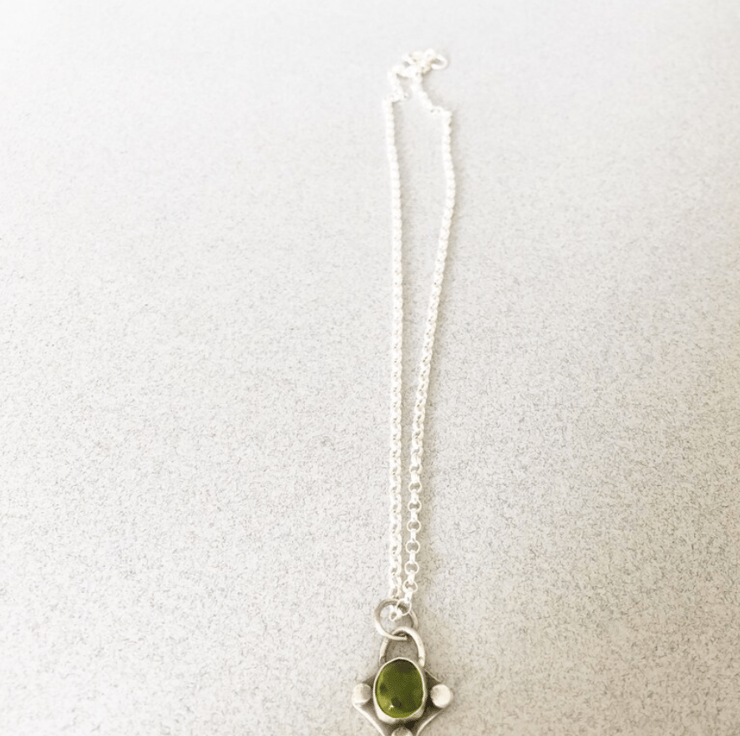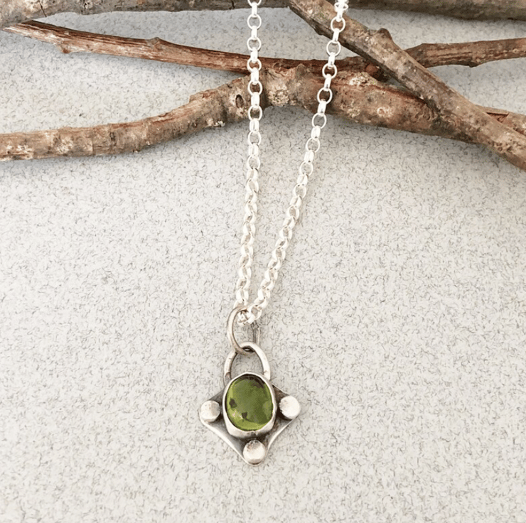 This listing is for a unique hand-crafted pendant made from a 9x11 peridot stone set in sterling silver.