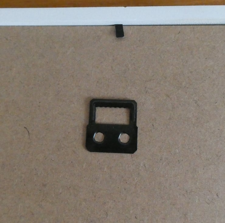 The frame measures 19.5cm square and is 3.5cm deep and is fitted with glass to protect the picture. It comes complete with a hanging fixture on the back or it could also stand on a bookcase or a shelf with a wall behind for support.