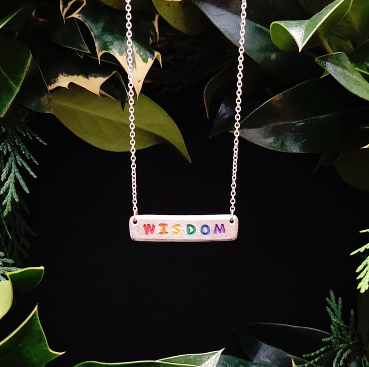I have a small selection of words listed here, though the options are limitless. If there is a particular word or phrase that you'd love to see on a necklace, add to your basket, let me know which word or short phrase you'd like in the wee box and I'll make one especially for you!