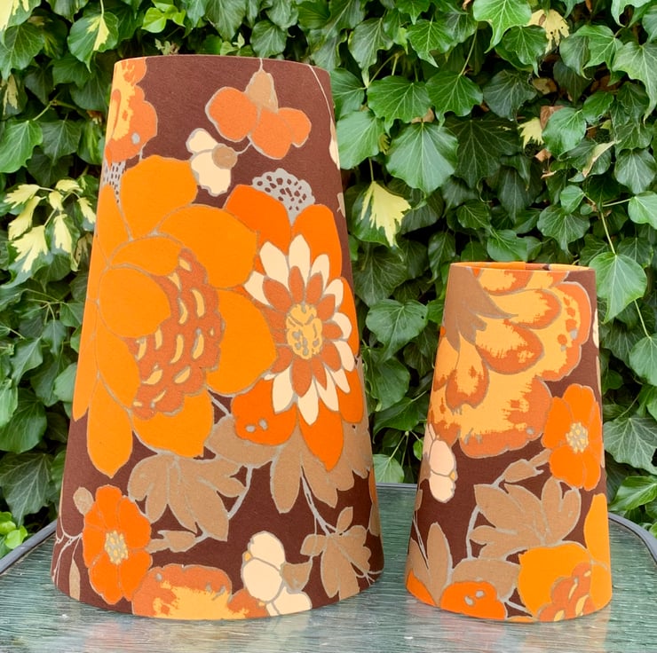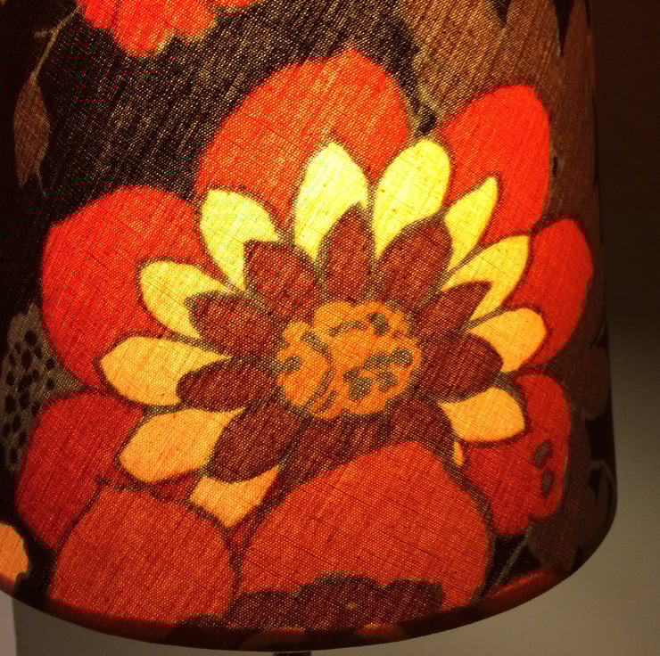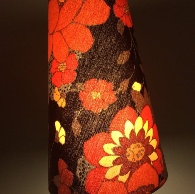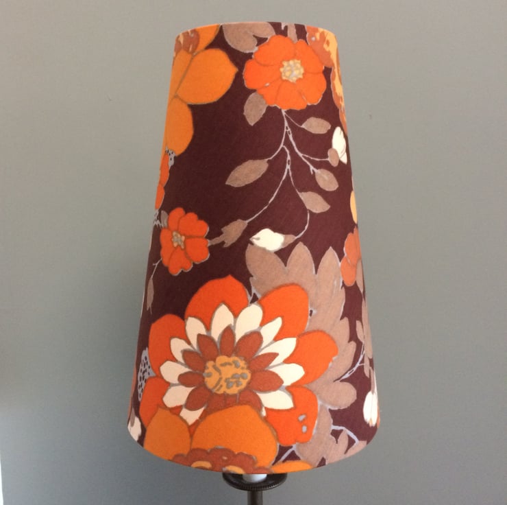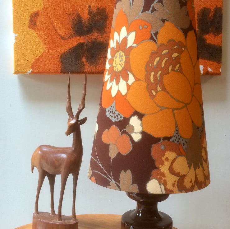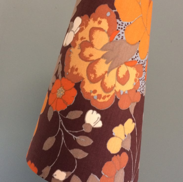 Funky Floral Genevieve Brown Orange 60s 70s Vintage style Fabric Lampshade - fab Moygashel fabric for a lampshade in a modern or retro home.