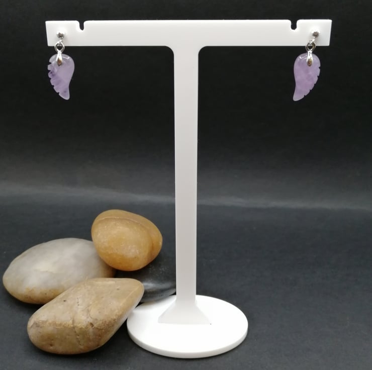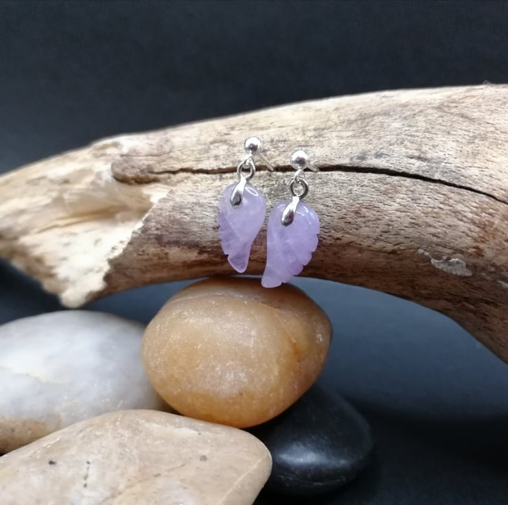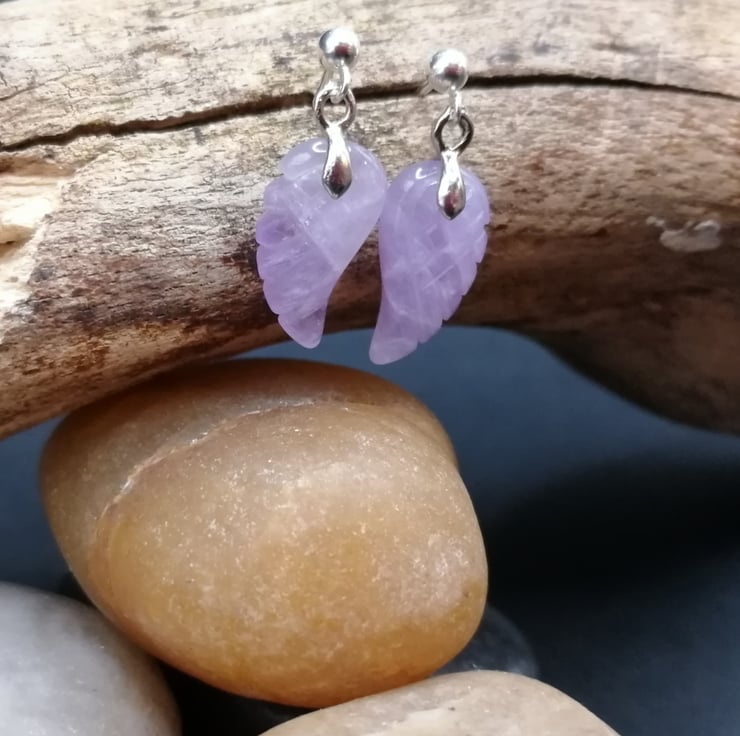 This pretty, little, angel wings earrings are made from carved amethyst. The posts are sterling silver.
