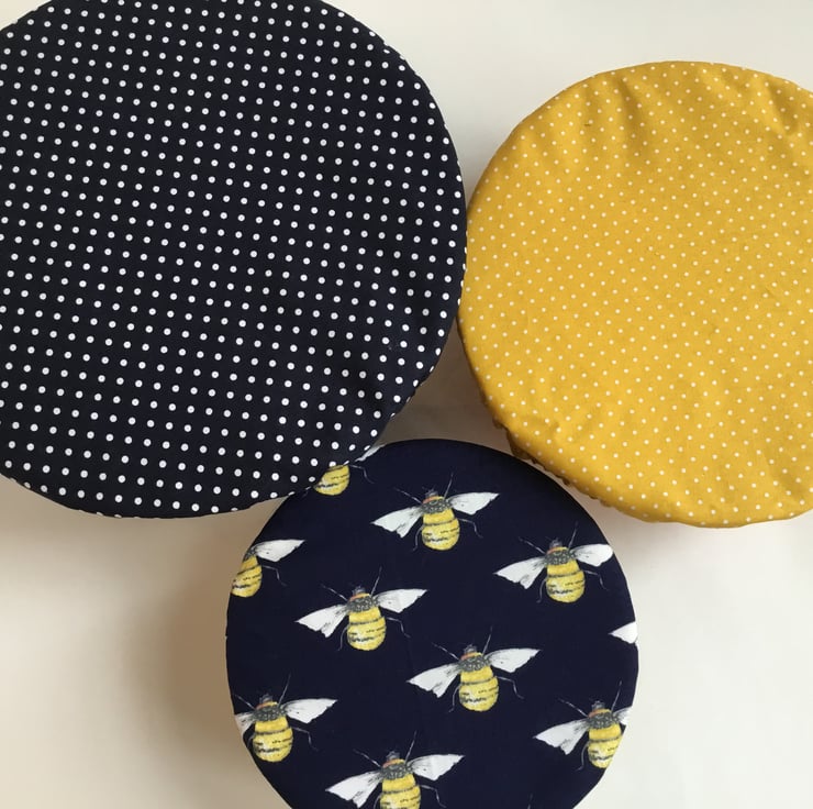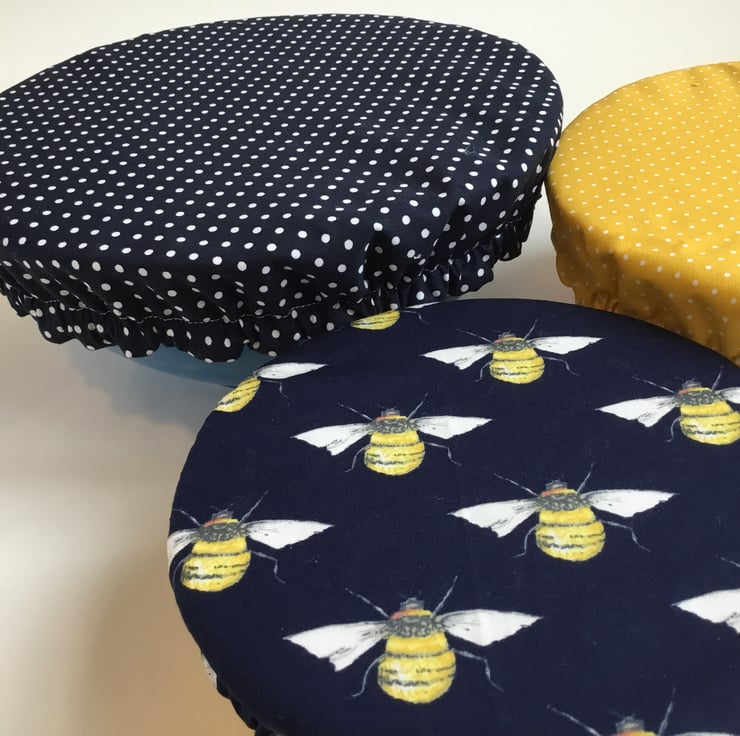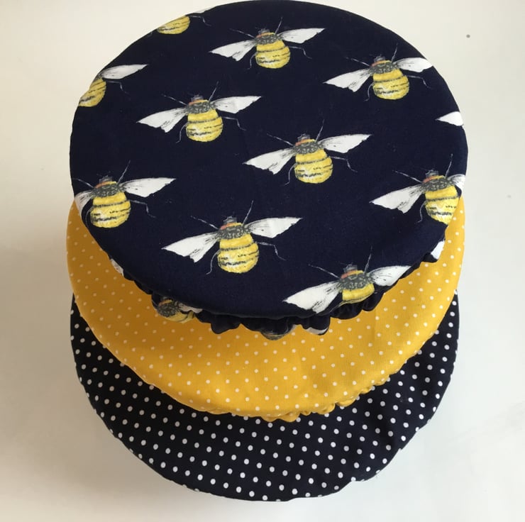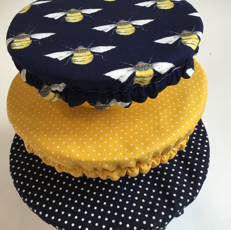 This set of 3 covers will fit bowls approximately 23cm, 19cm and 16cm (9", 7.5" and 6").